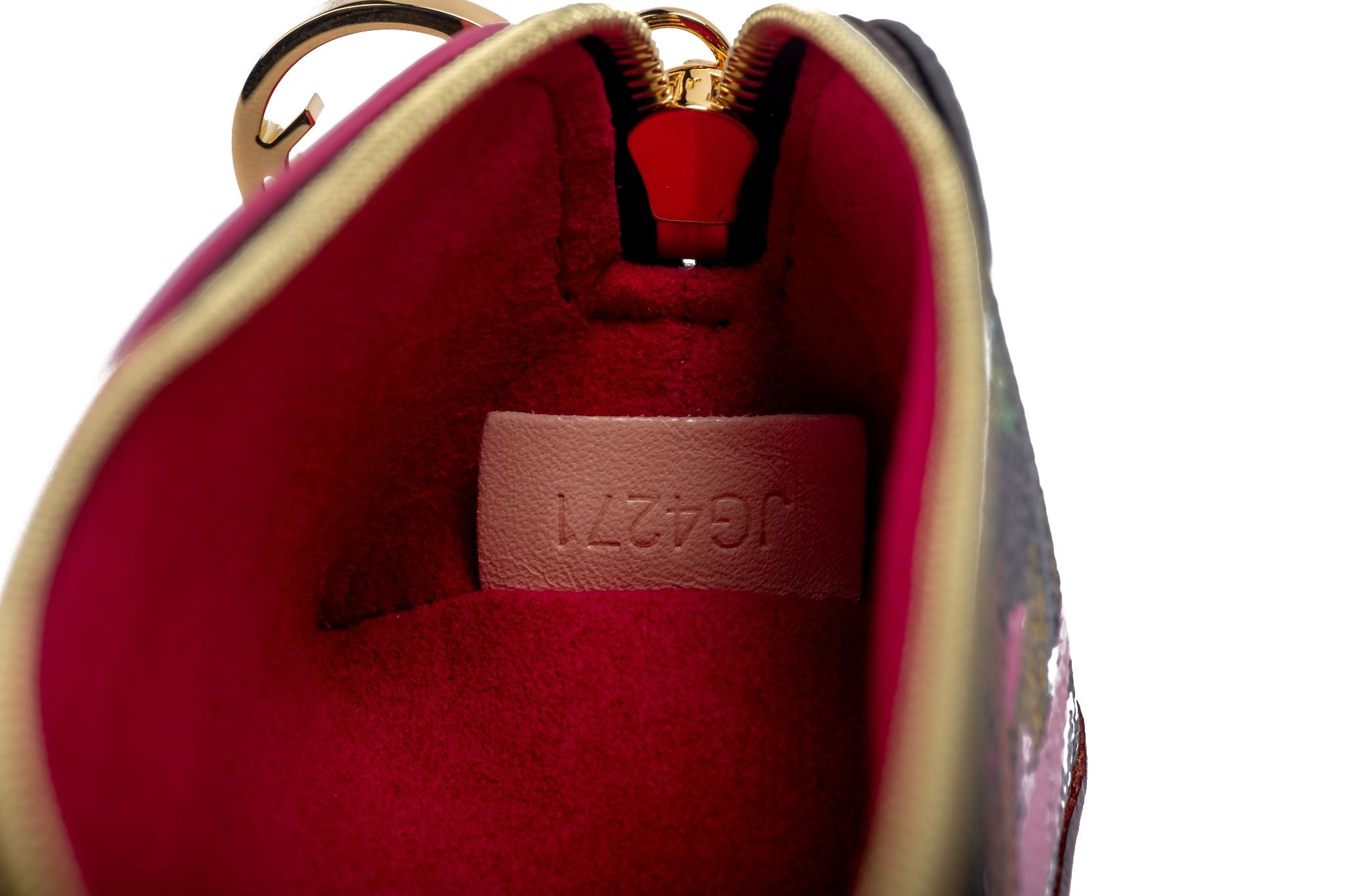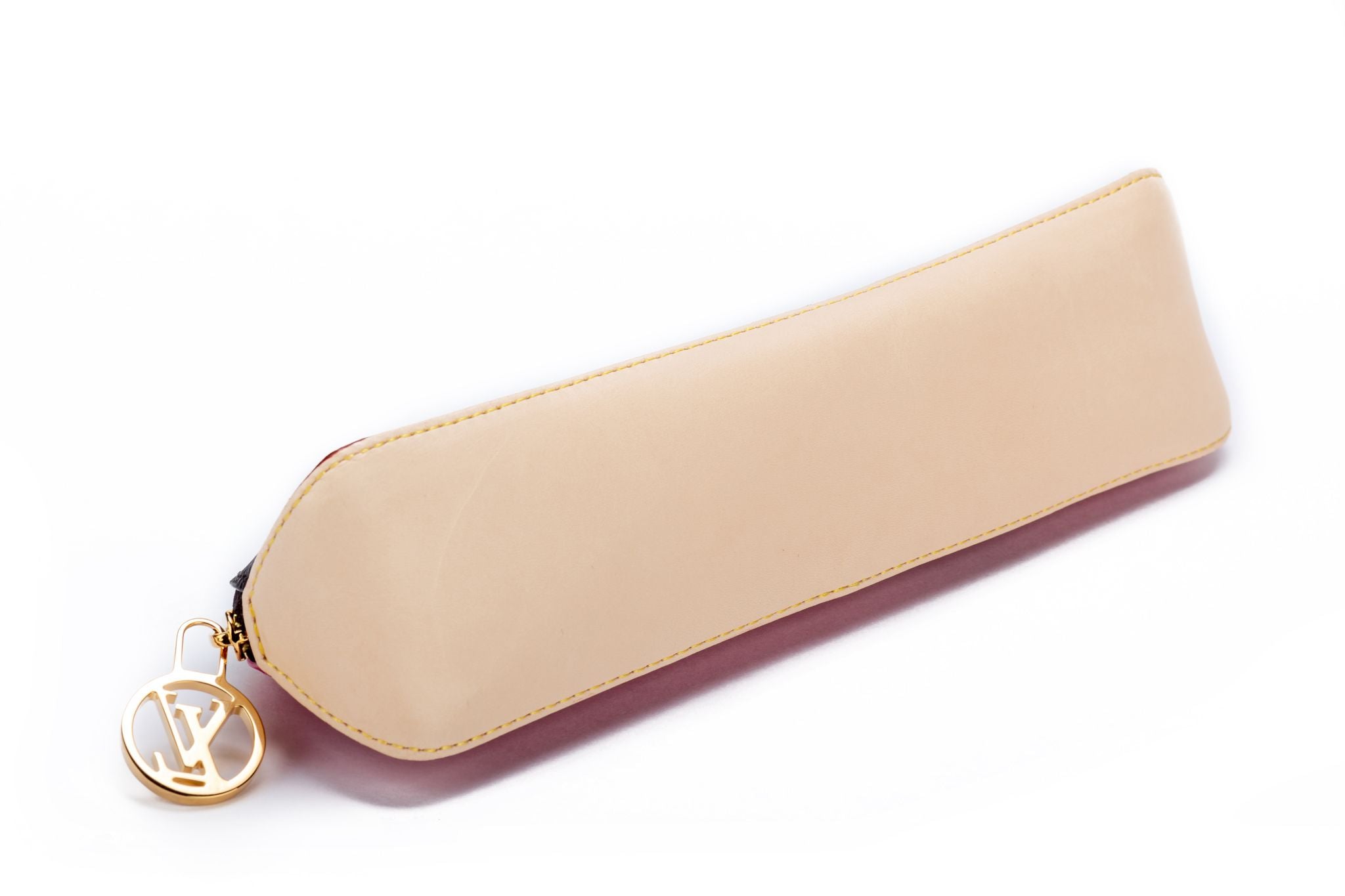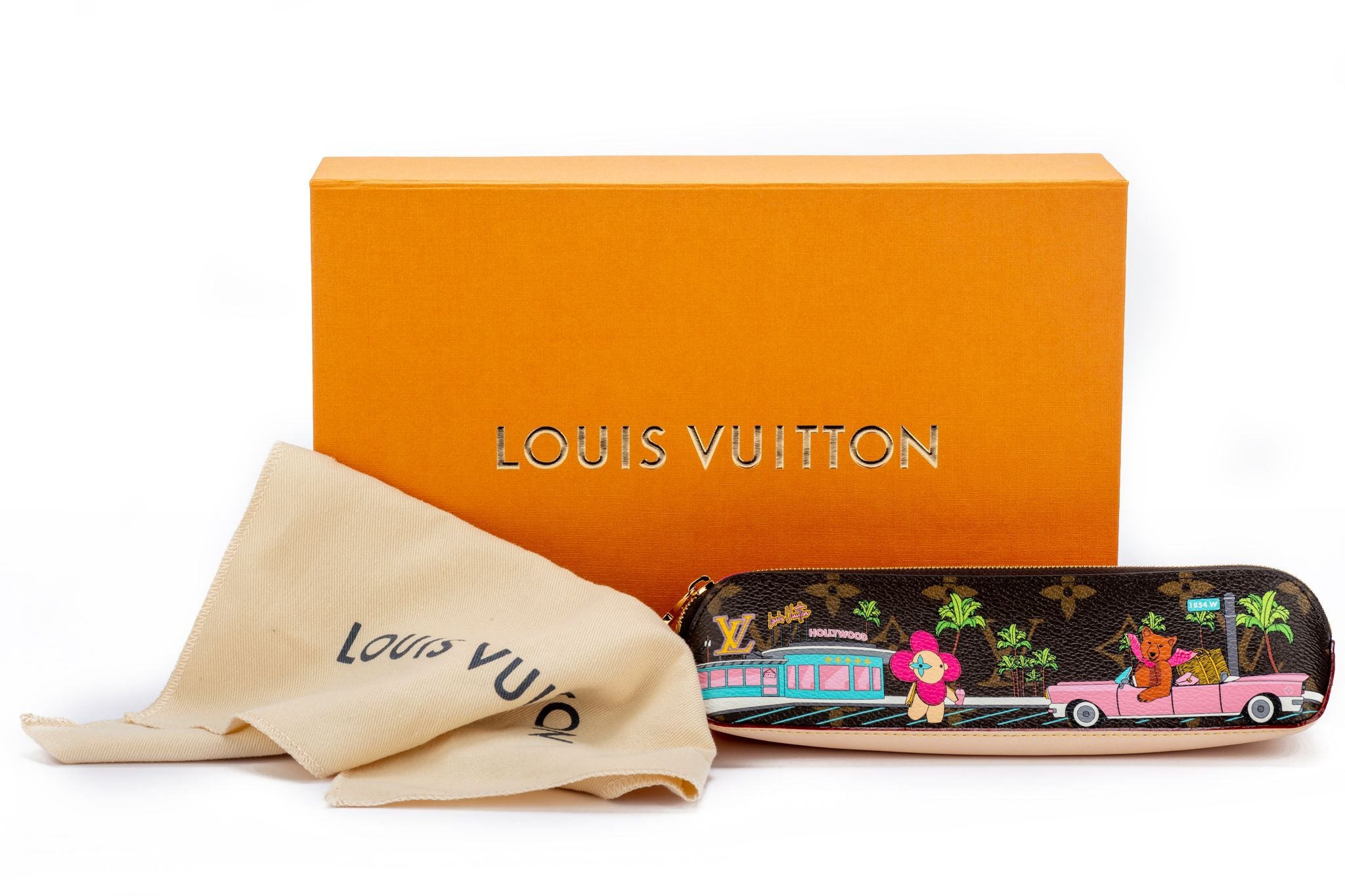 The Hollywood Xmas Elizabeth pencil case displays a joyful travel scene. It features House mascot Vivienne sipping a milkshake while a teddy bear drives along Rodeo Drive. This piece coordinates with items from the Leather Goods and Accessories collections that also display this wanderlust-inspired design. Brand new in box with original dust cover.