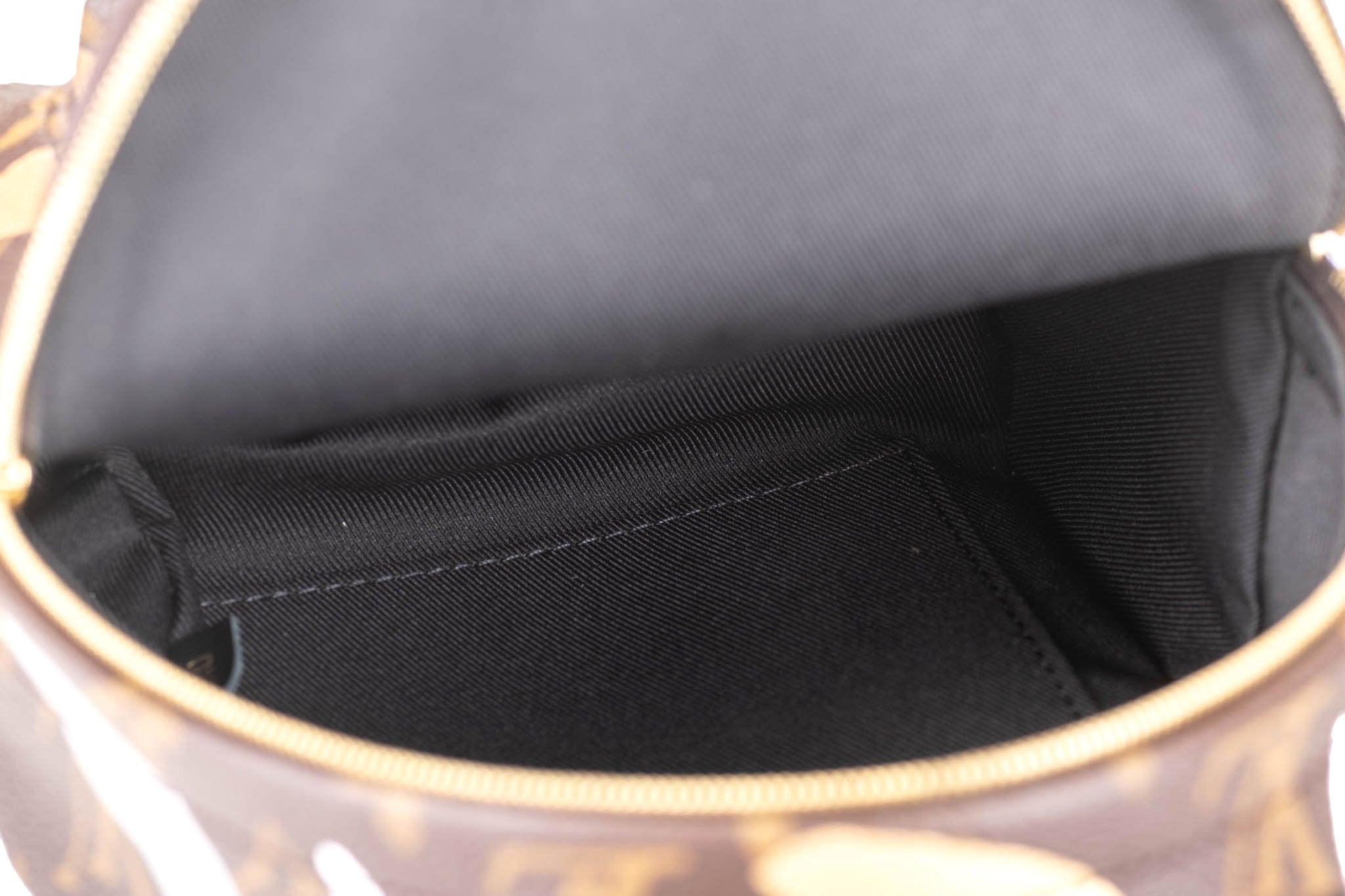 Louis Vuitton limited edition camouflage mini backpack. Monogram signature canvas with black leather straps. External zipped pocket, internal open pocket. Comes with serial number, dust cover and box.