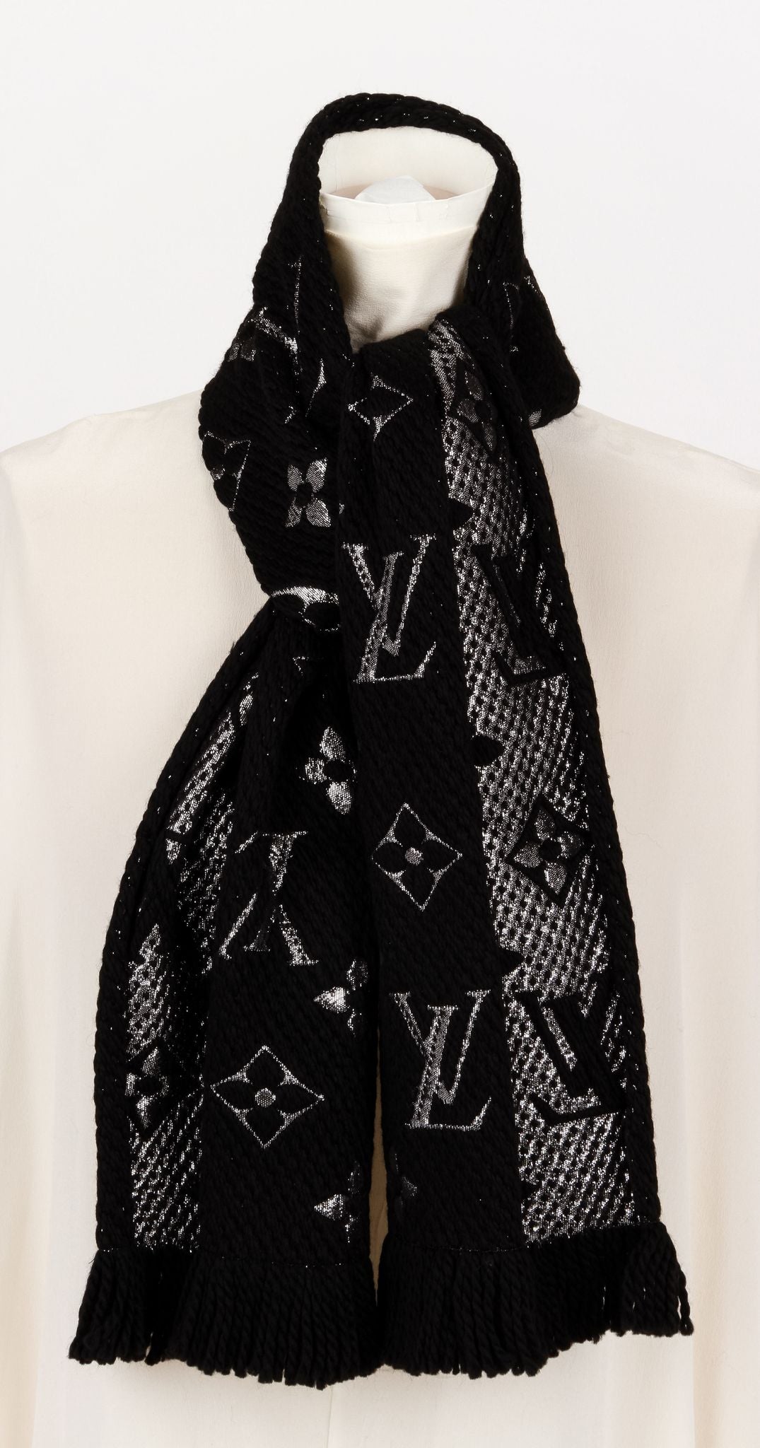 Louis Vuitton new back shine logomania wool scarf. Original care tag. Store price $610.