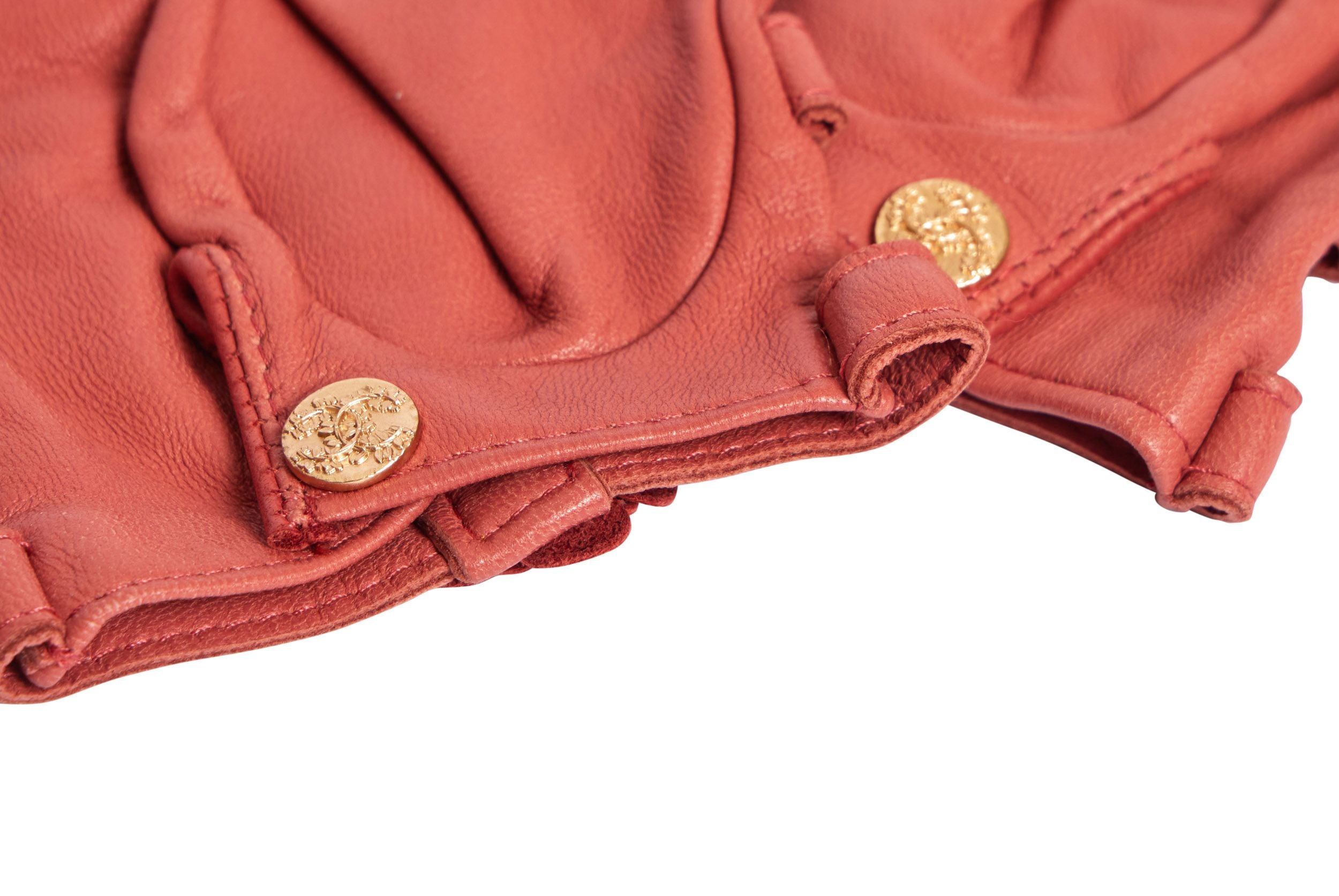 New Chanel rust lambskin fingerless gloves with 4 little camellias on each glove Gold plated botton closure