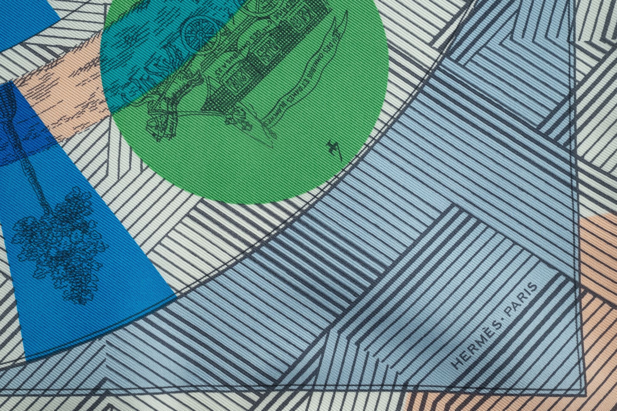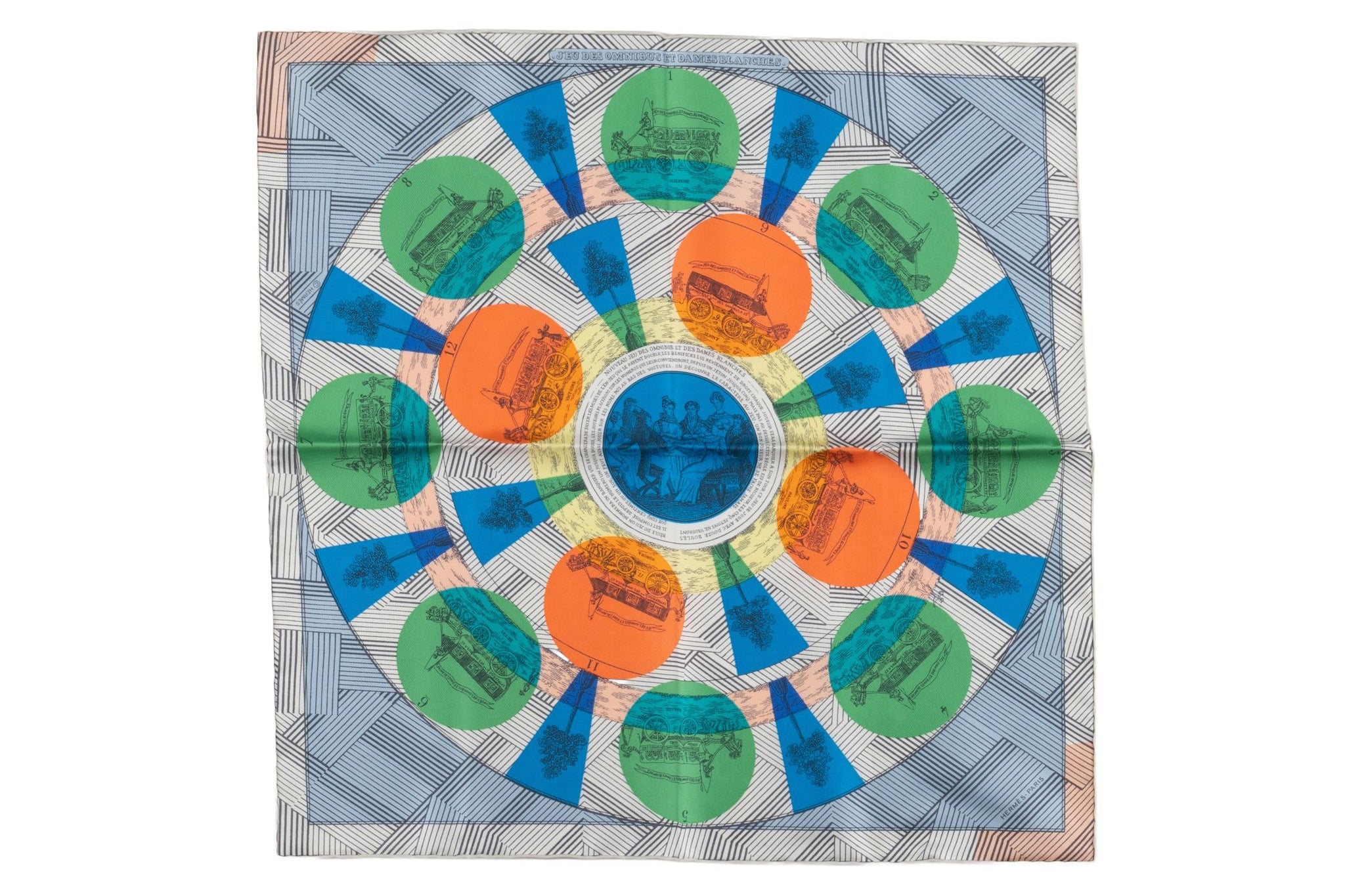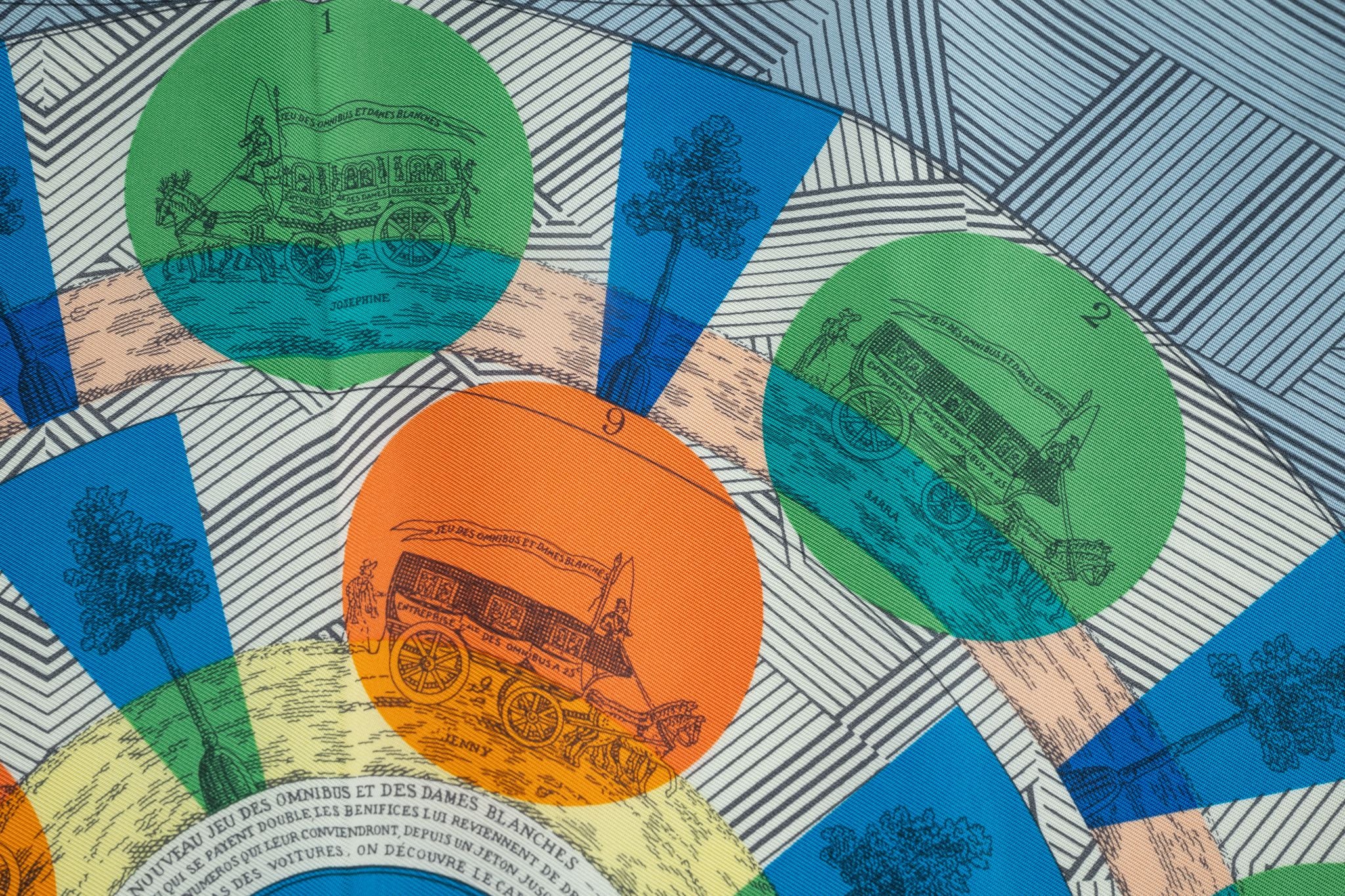 This Hermès Jeu des Omnibus et Dames Blanches is 100% silk with hand rolled edges. Comes with ribbon and original box.