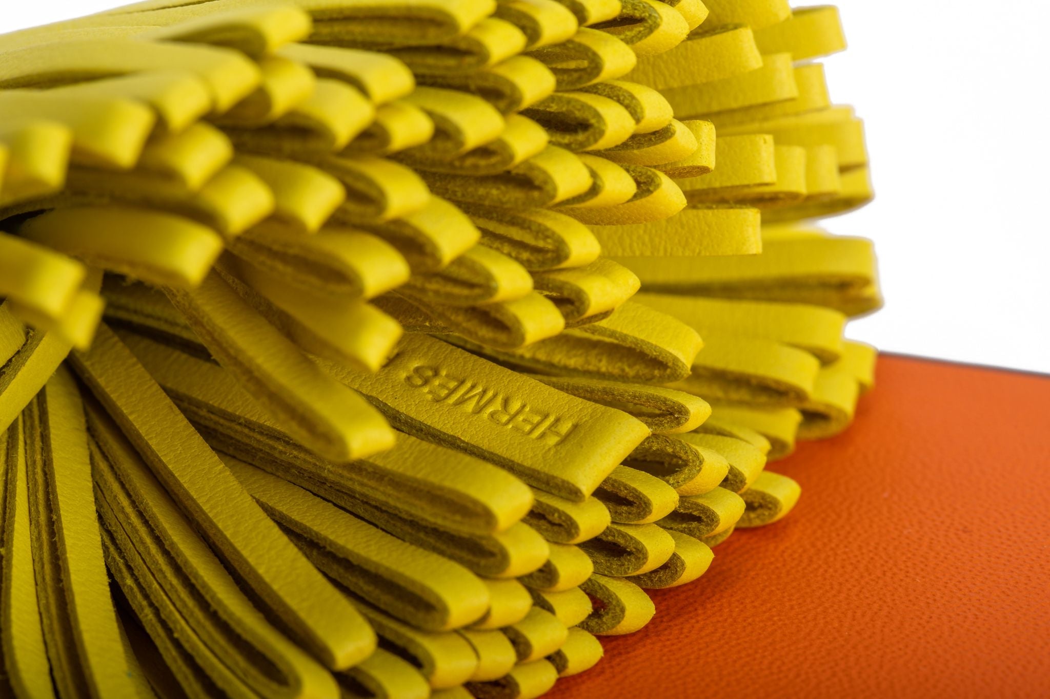 Hermès lime yellow leather Carmen tassel keychain. Brand new with original box, ribbon.