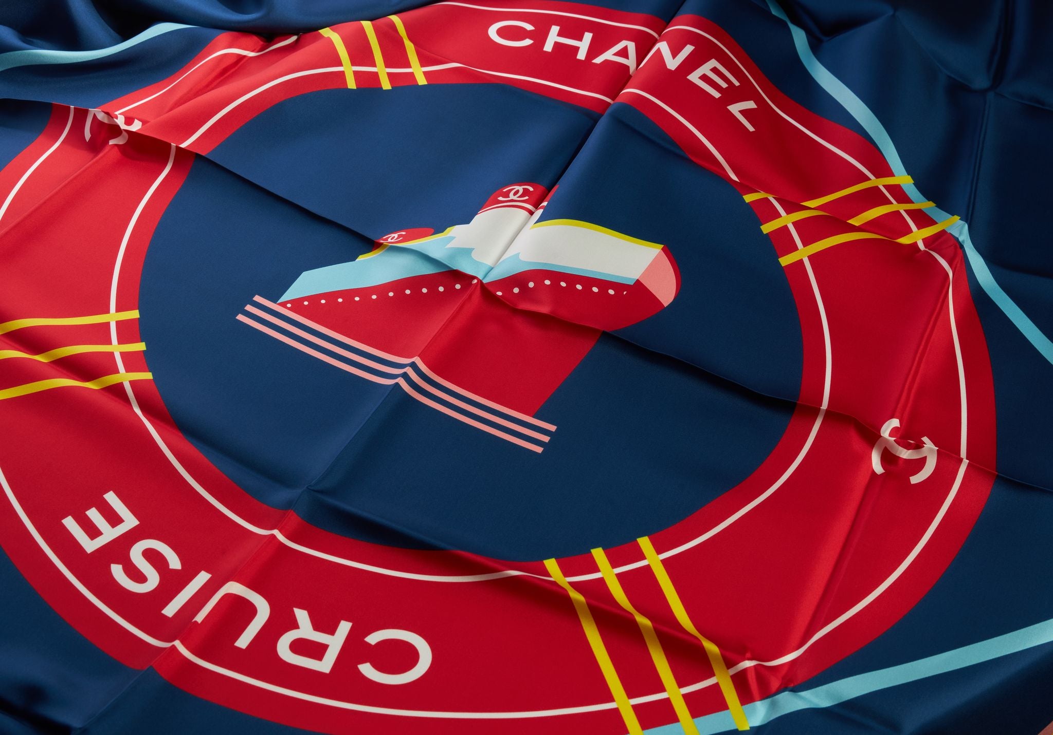 Chanel brand new in unworn condition oversize navy blue silk "La Pausa" cruise collection shawl. 100% silk. Original care tag.