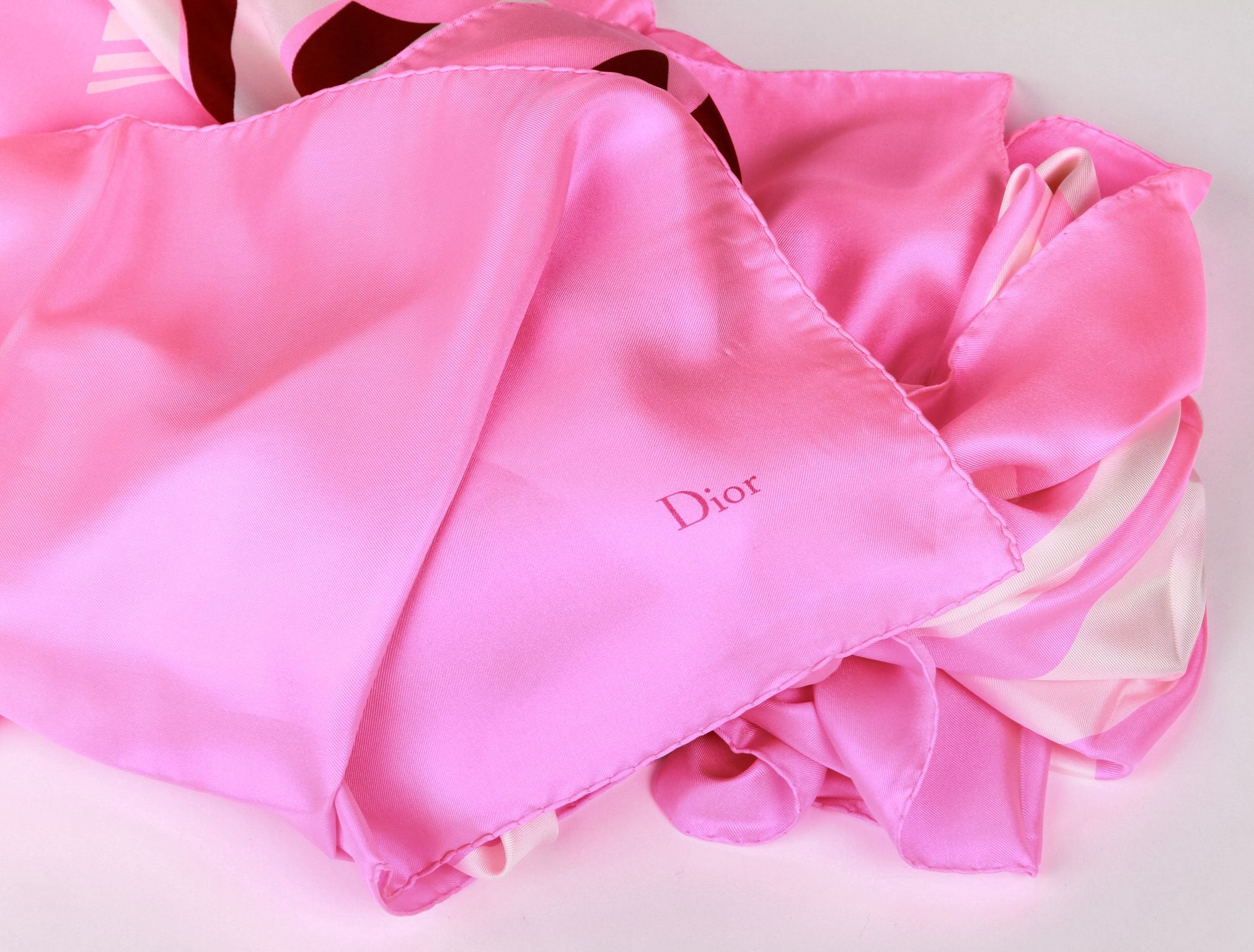 Dior brand new oversize shawl geometric fluorescent pink, burgundy, white, 100% silk, 54" x 54"