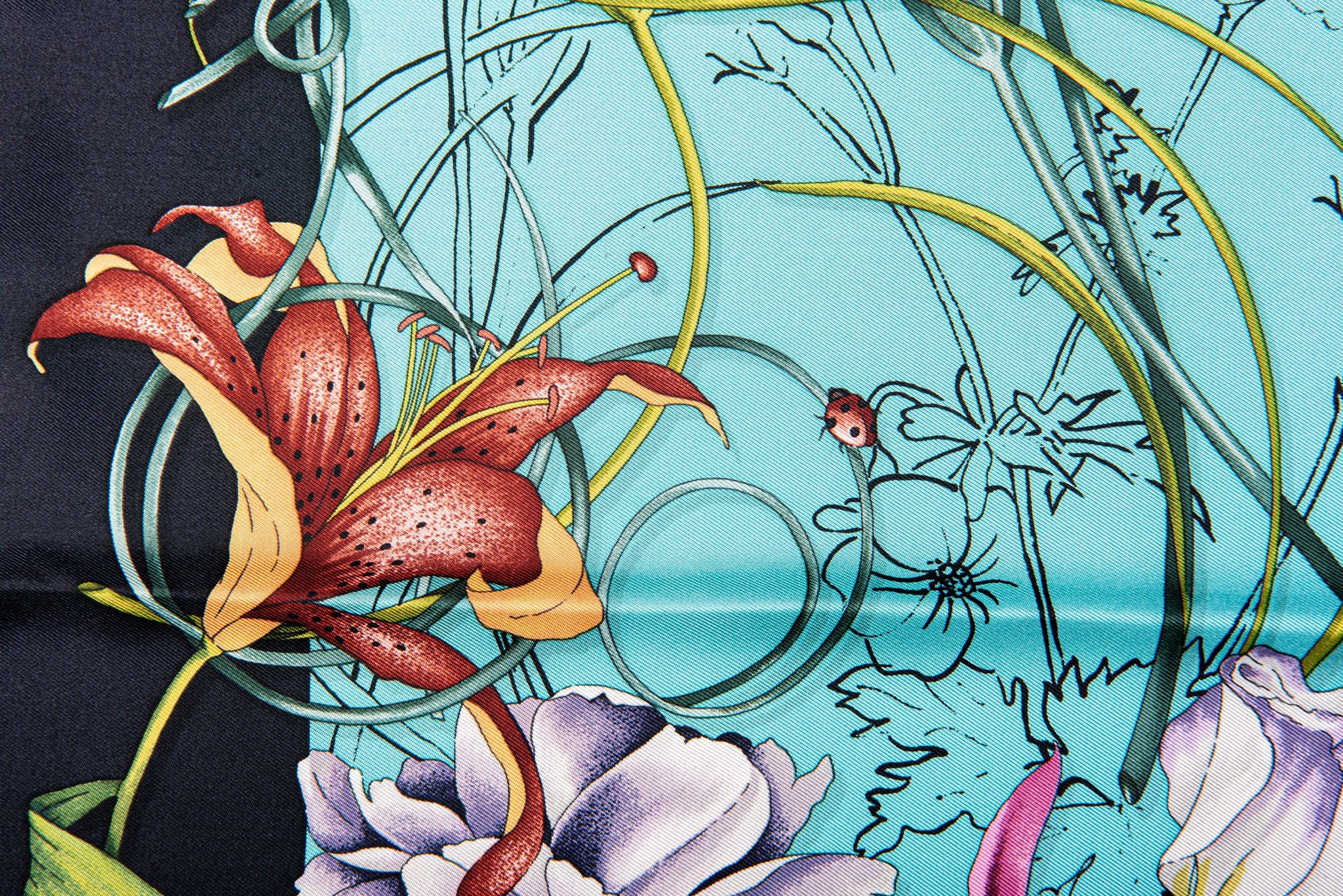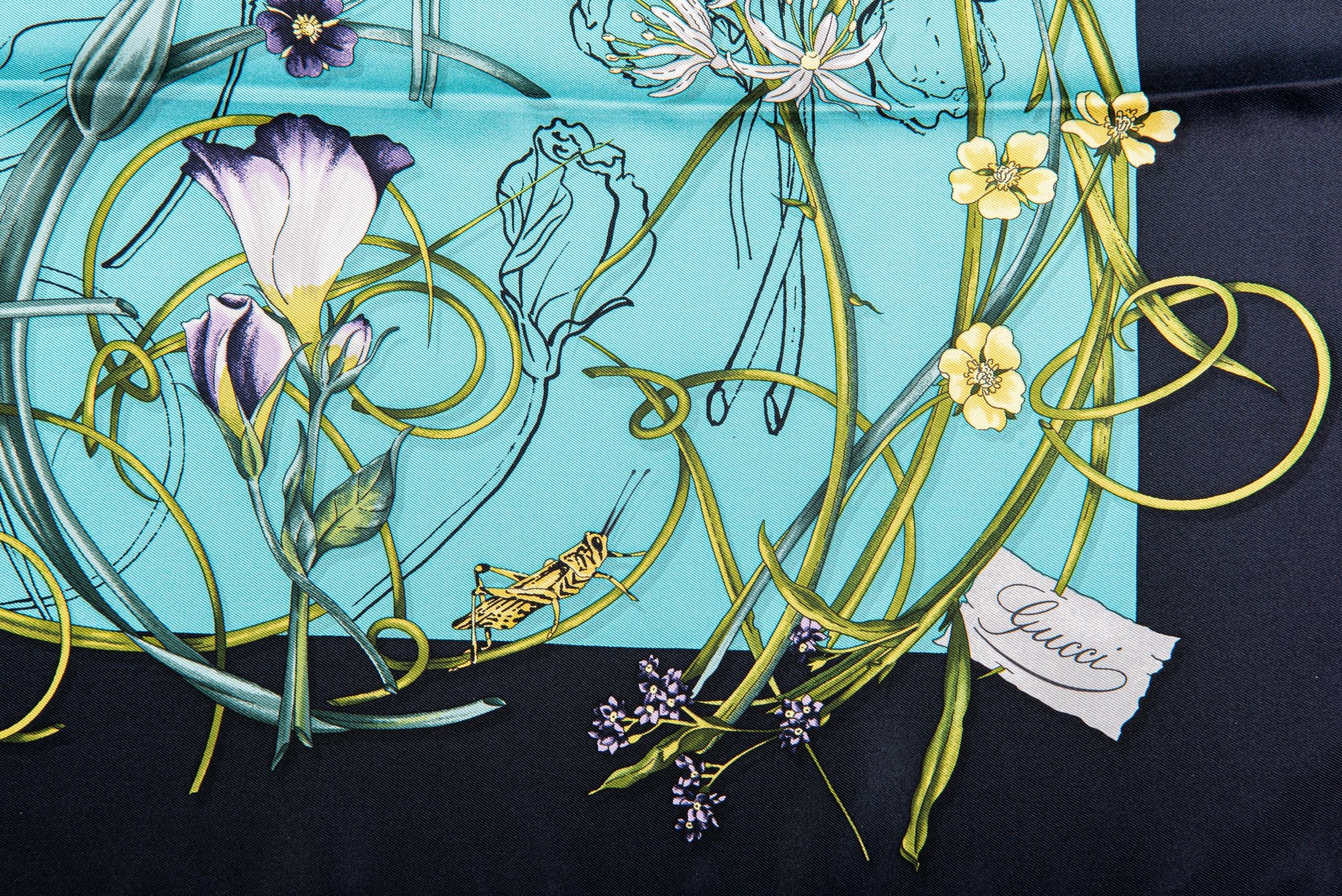 Gucci brand new 100% silk floral scarf. 35"x35", black, aqua, multicolor flowers.