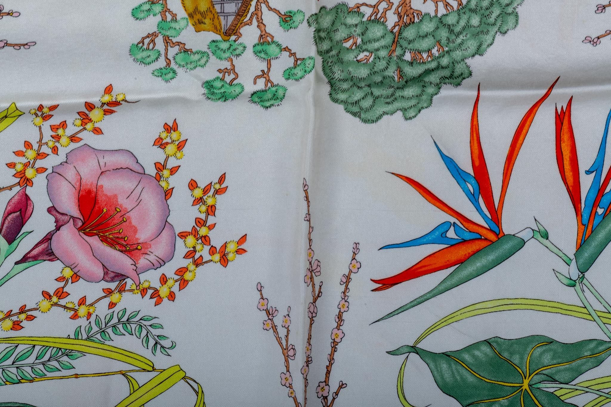 Gucci silk twill floral scarf. Hand rolled edges. Accornero design, highly collectible. Chinese vases design with flowers. Does not include box.