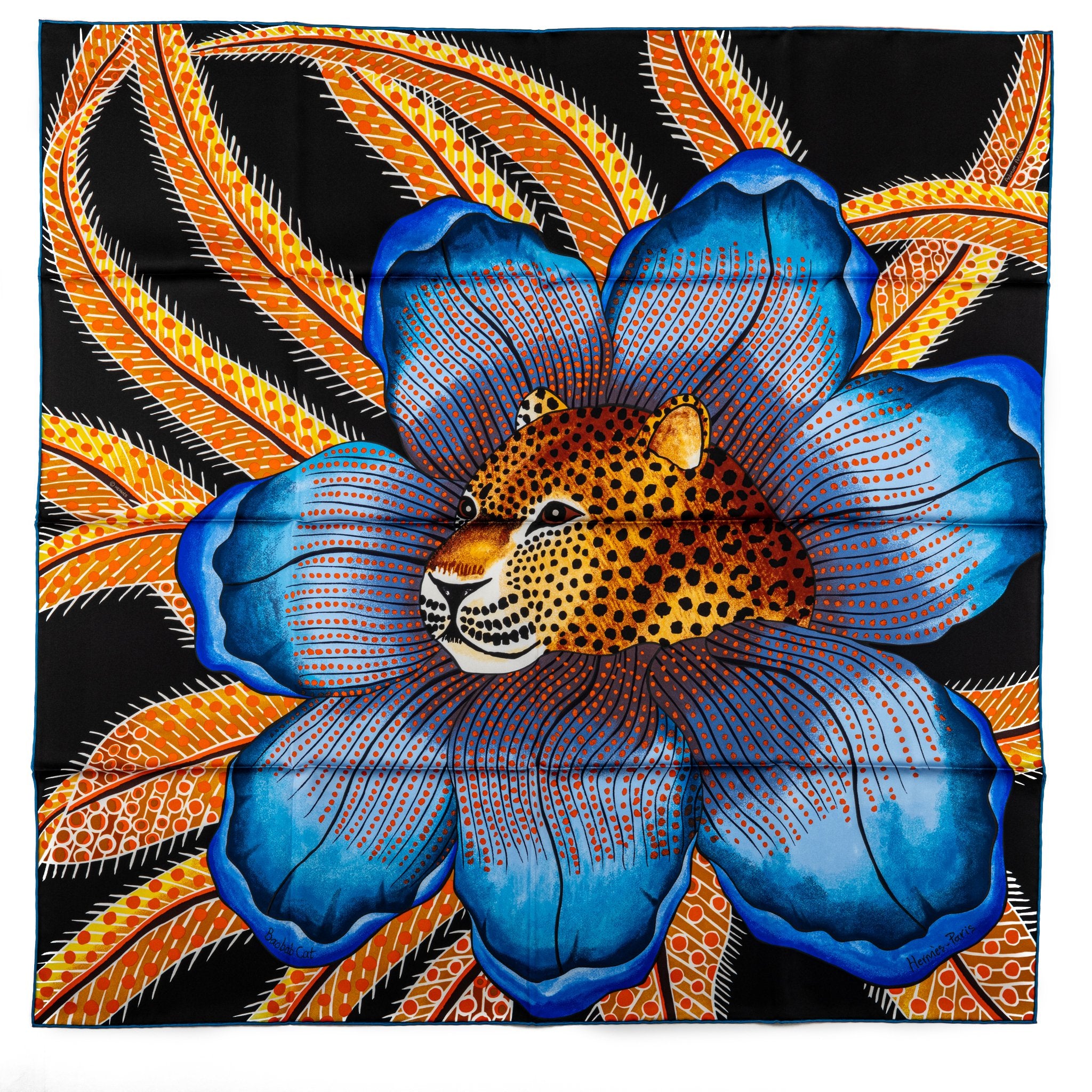 Hermès silk jaguar scarf with hand-rolled edges. Brand new with box.
