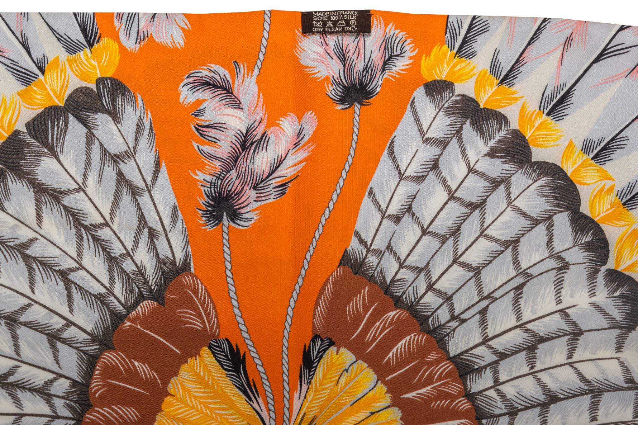 Hermès Brazil maxi twilly scarf with feather floral detail. Hand-rolled edges. Discontinued size. New in box.