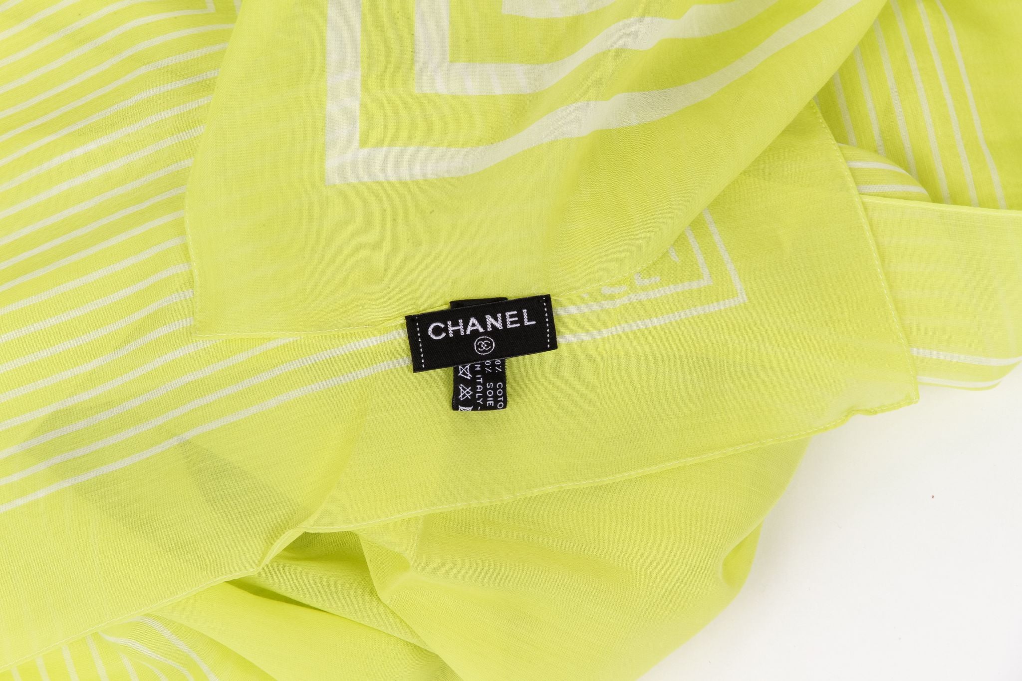 Chanel new chartreuse and white striped design sarong , 80% cotton, 20% silk, 78" x 55"
