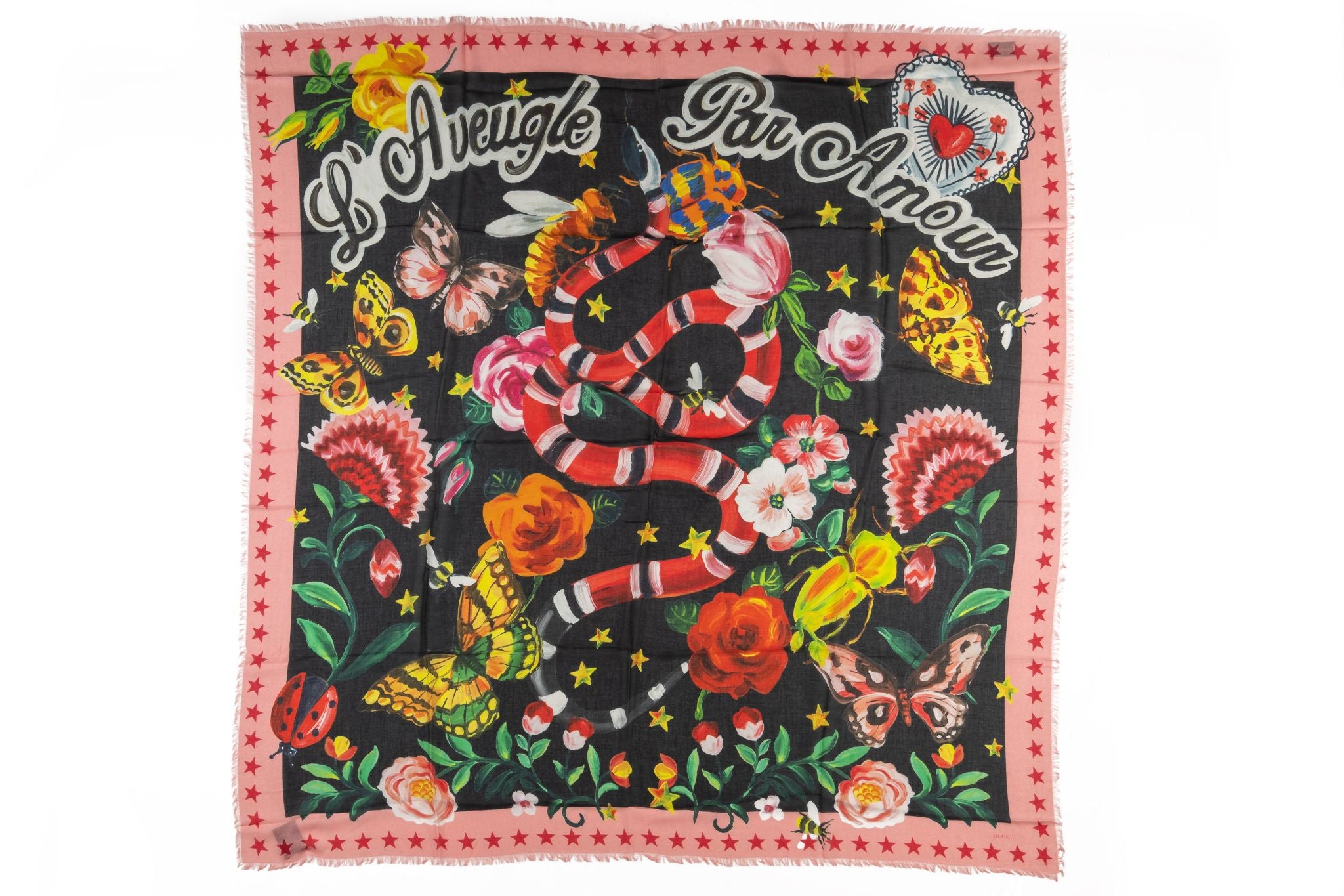 Gucci flowers and snake large silk, modal, & cashmere shawl.