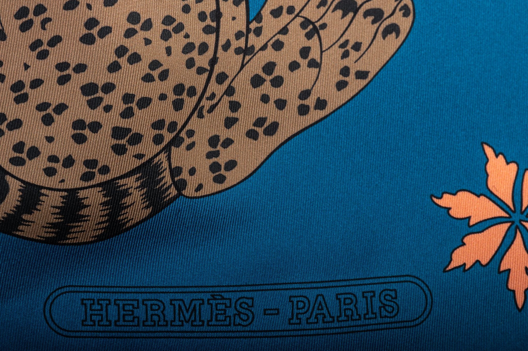 Hermès brand new blue guepards silk stole. Comes with original box.