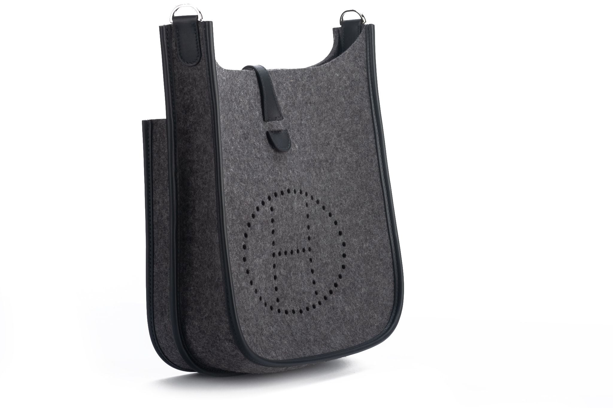 Hermes BNIB Grey/Black Felt Evelyne PM
