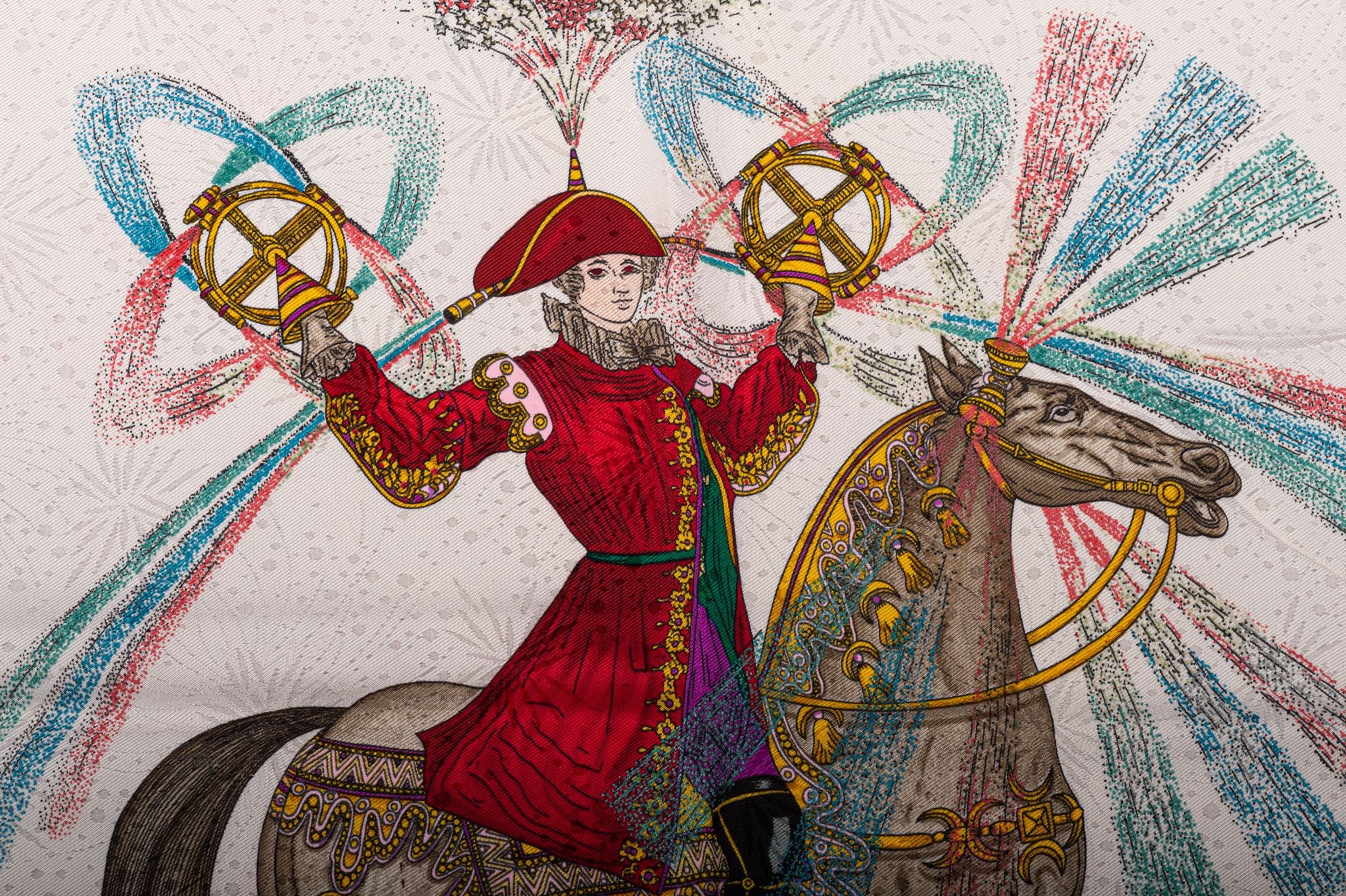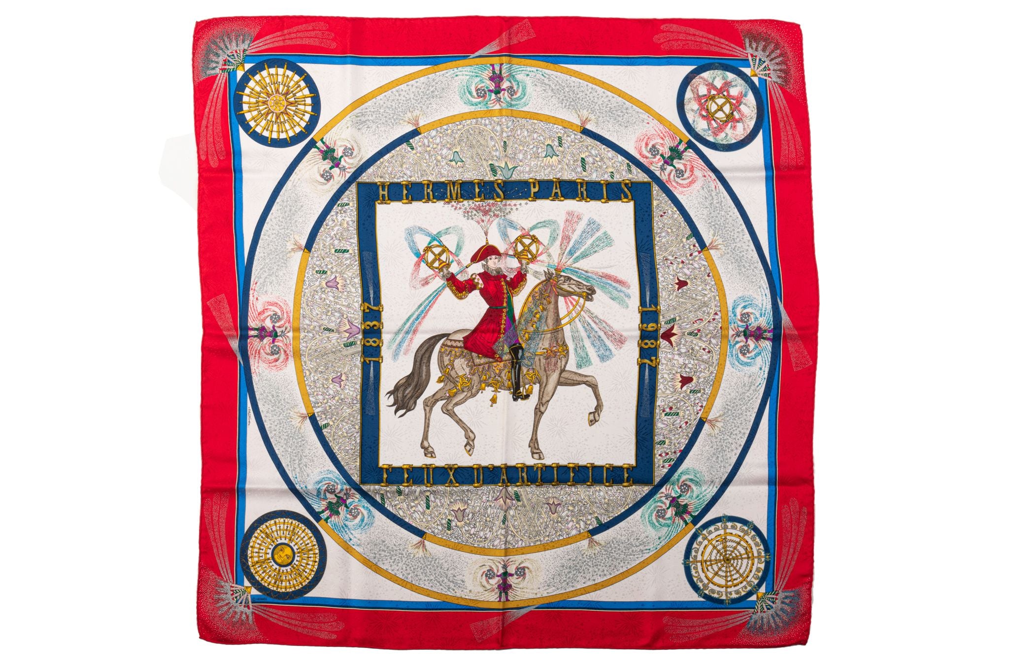 Hermès collectible "feux d'artifice" silk scarf . Red and white combination. Hand rolled edges.