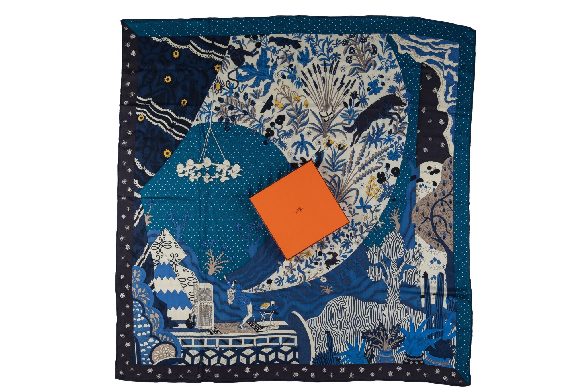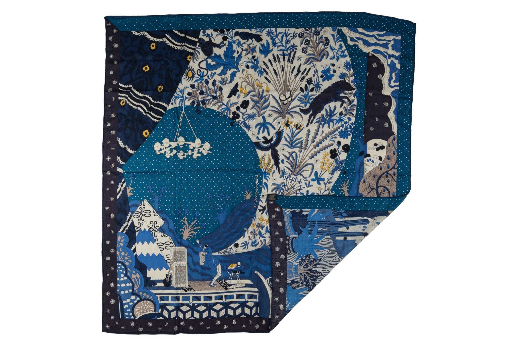 Hermès Le Premier Chant (The First Song) Silk Scarf designed by Sophia Andreotti and Edouard Baribeaud for Spring/Summer 2022. Features hand-rolled edges and comes with original box.