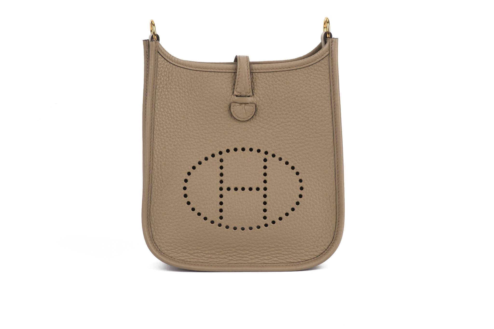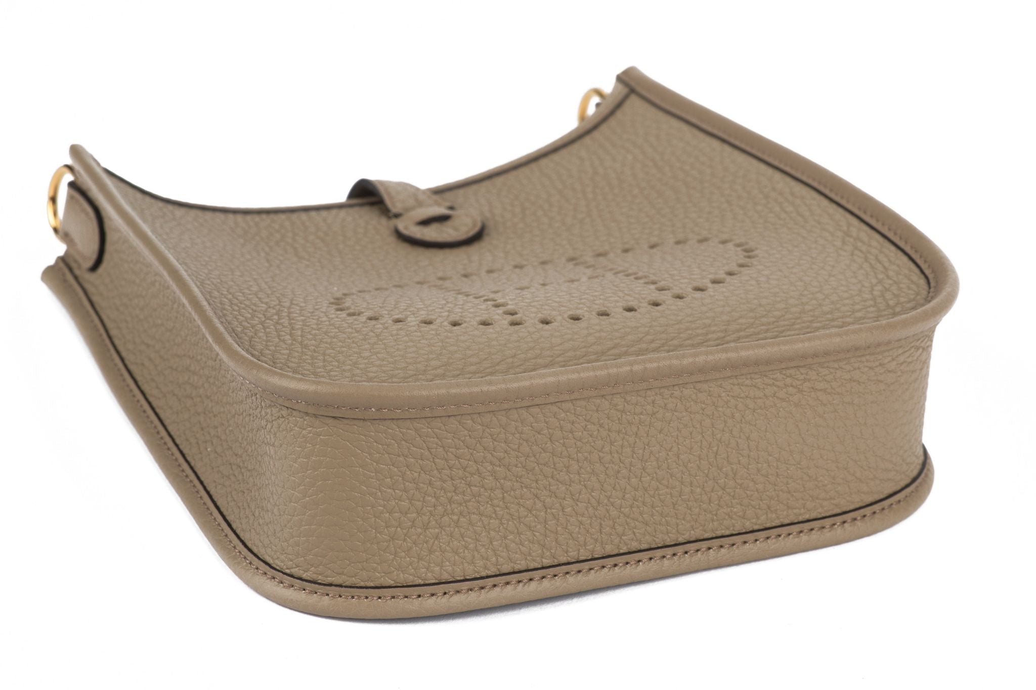 The Hermès mini Evelyne shoulder bag in sage clemence leather and gold plated hardware, with one removable strap, can be worn on the shoulder or across the body. Date stamp B. Brand new , comes with ribbon, double dustcover, booklet and original box.
