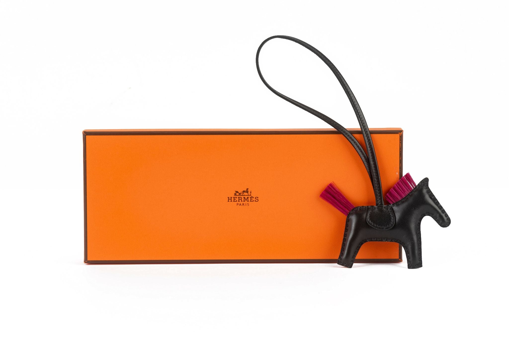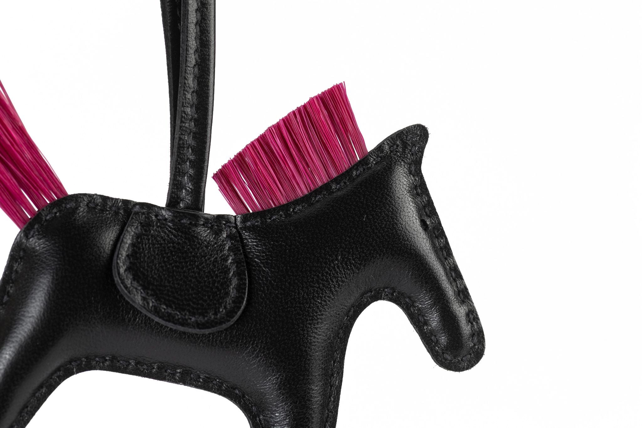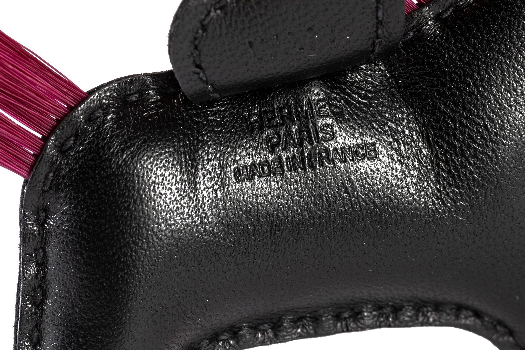 This Hermès Milo Lambskin Grigri Rodeo Pegase Horse Bag Charm PM in black, has the limited edition rouge sellier mane. First letter W. New with original box and ribbon.