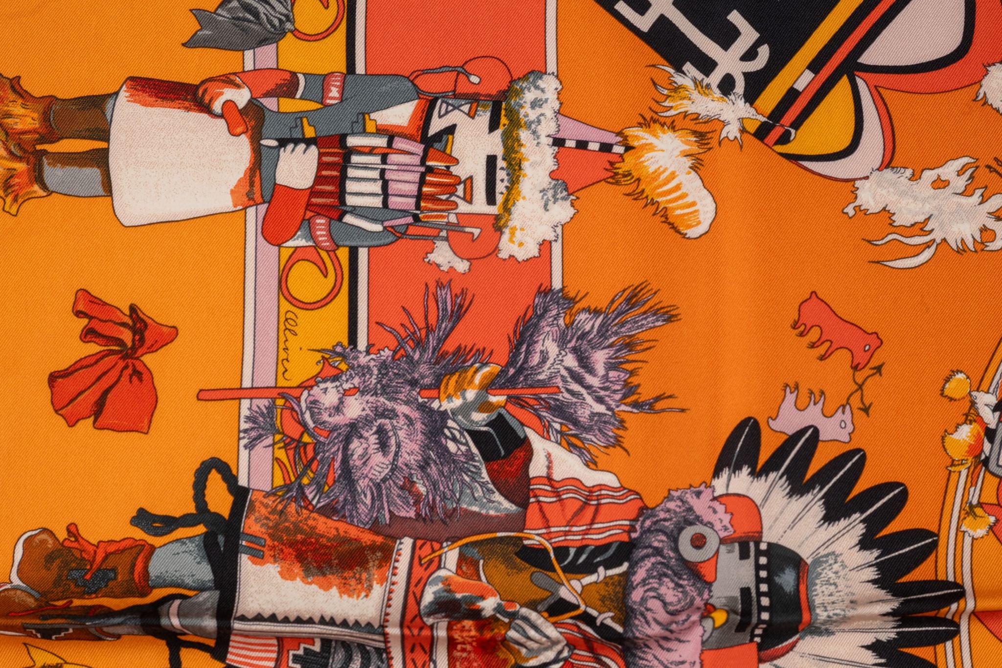 Hermès Orange "Kachinas" Silk Scarf