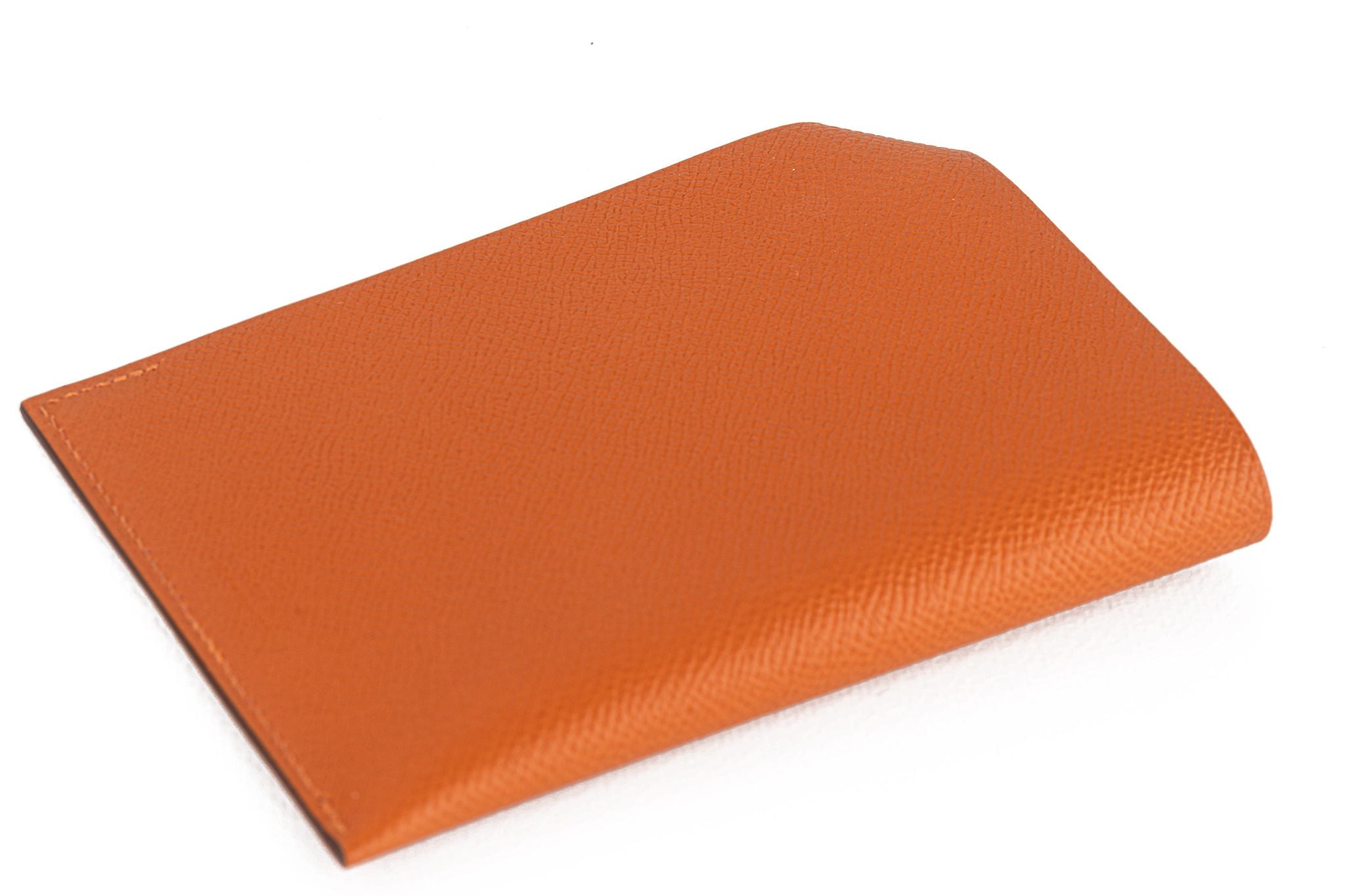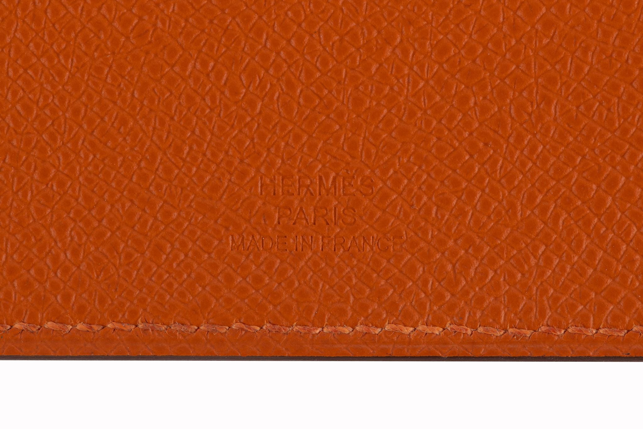 Hermès orange Epsom leather passport holder and snap closure. Palladium plate comes with the original box. Made in France. New in unused condition.