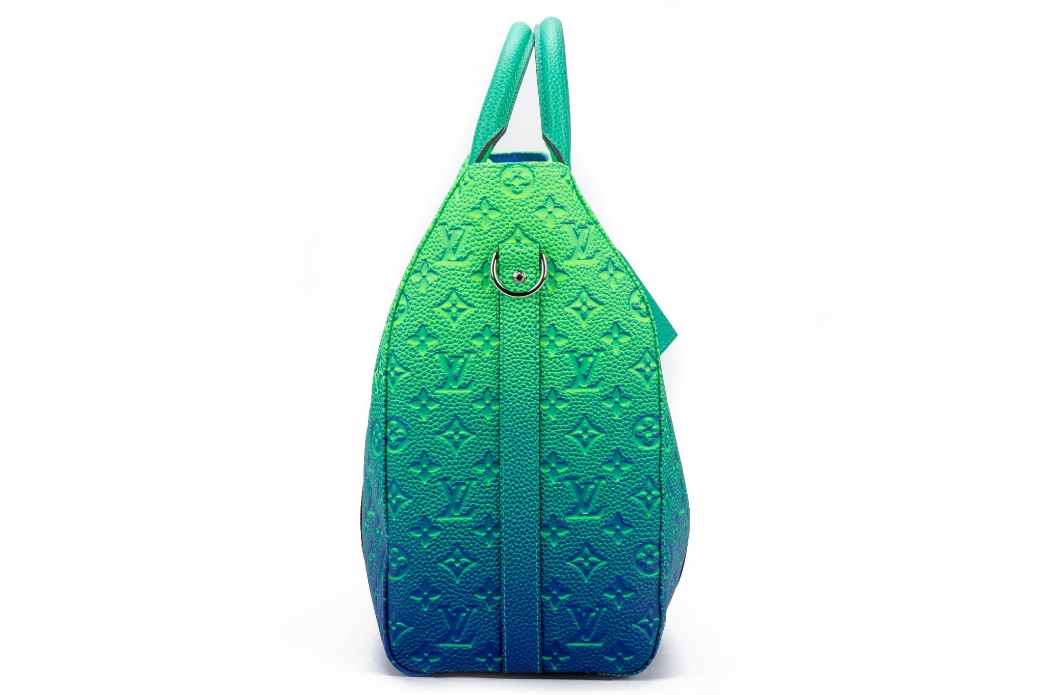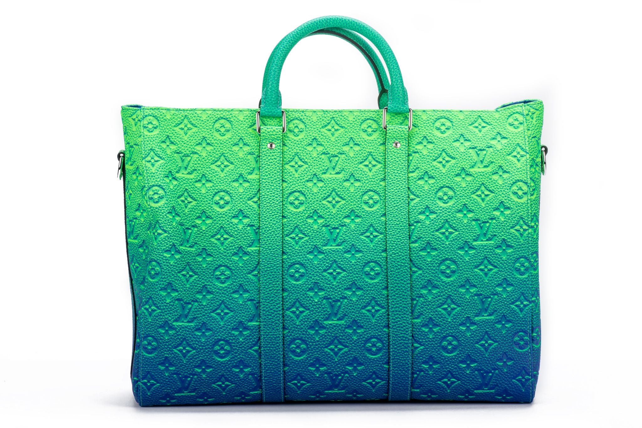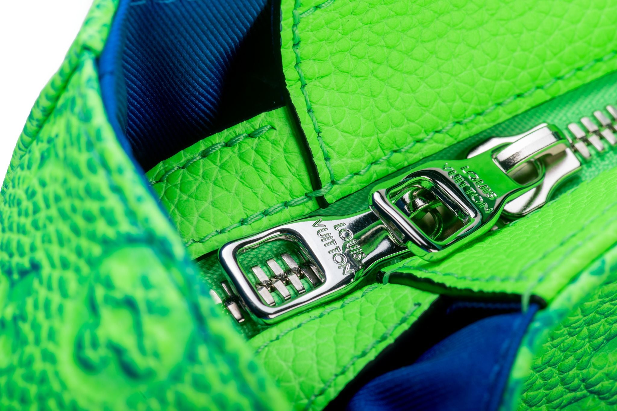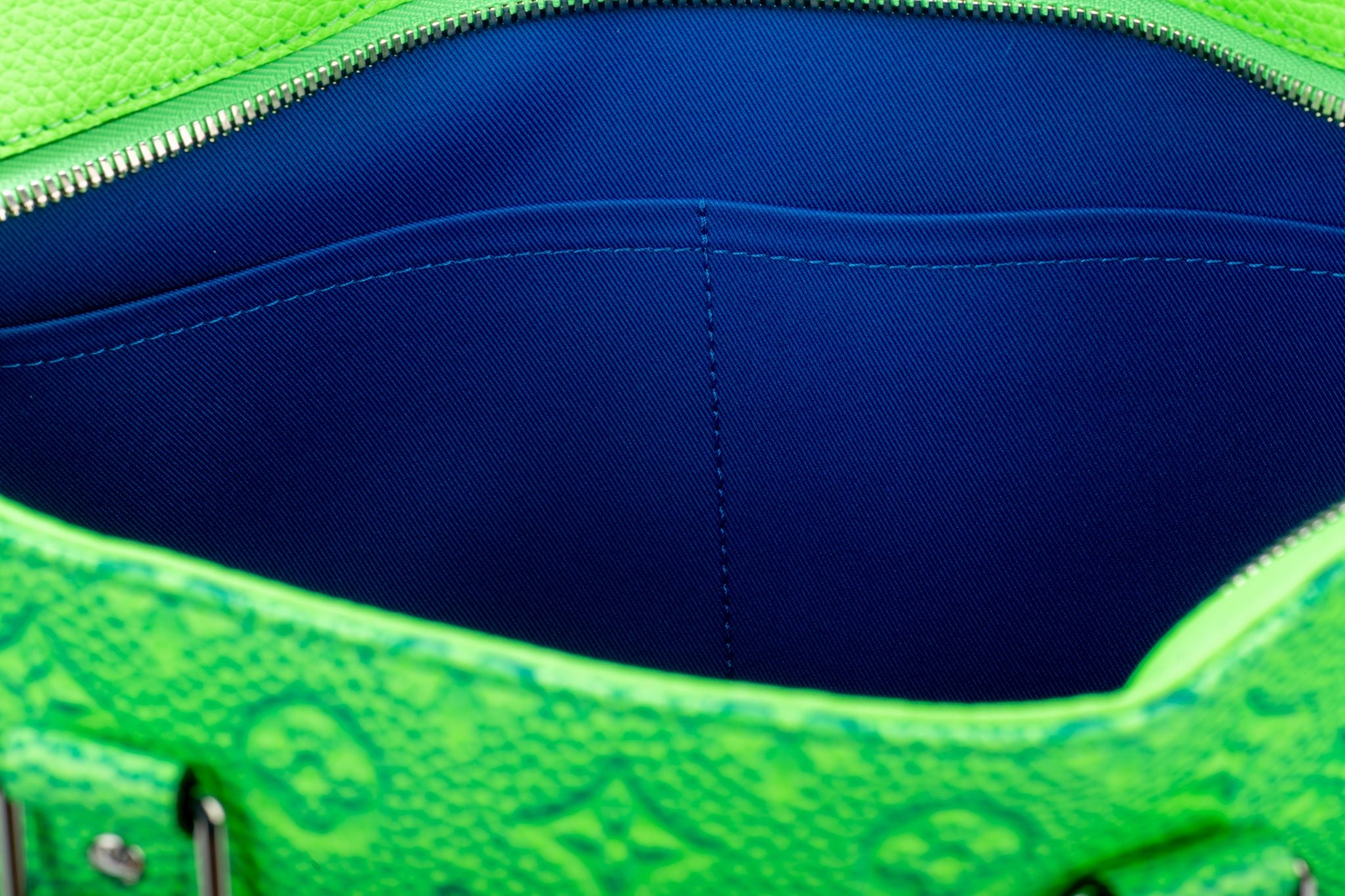 Virgil Abloh takes the House’s classic weekend bag into a maximalist world of color and energy. The bright florescent colors of the Taurillon Illusion leather give an entirely new feel to the embossed Monogram pattern that adorns this bag. New with original dust cover and box.