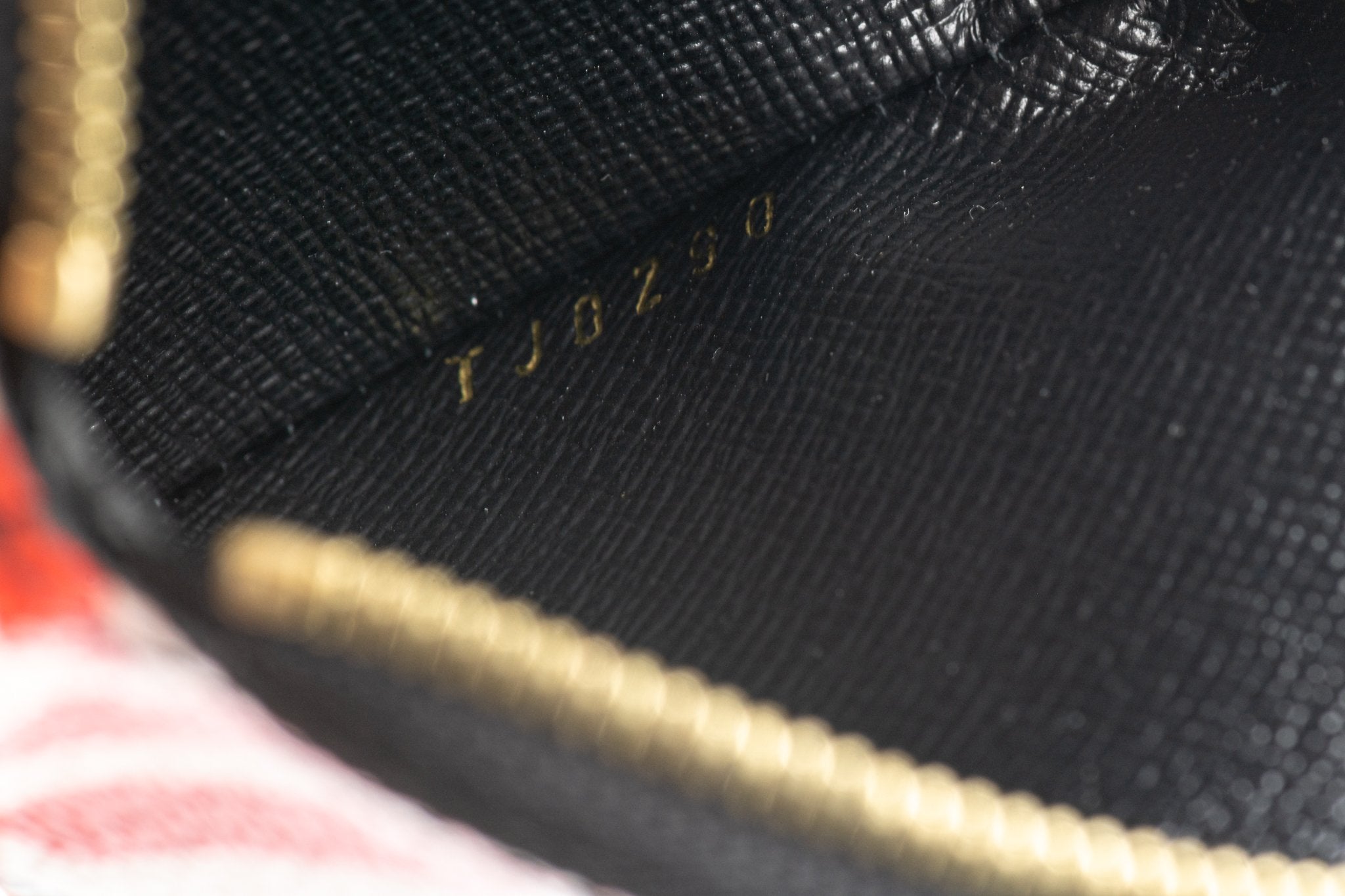 Louis Vuitton limited edition tribal round coin purse. Monogram coated canvas with black leather trims. Brand new with dust cover and box.