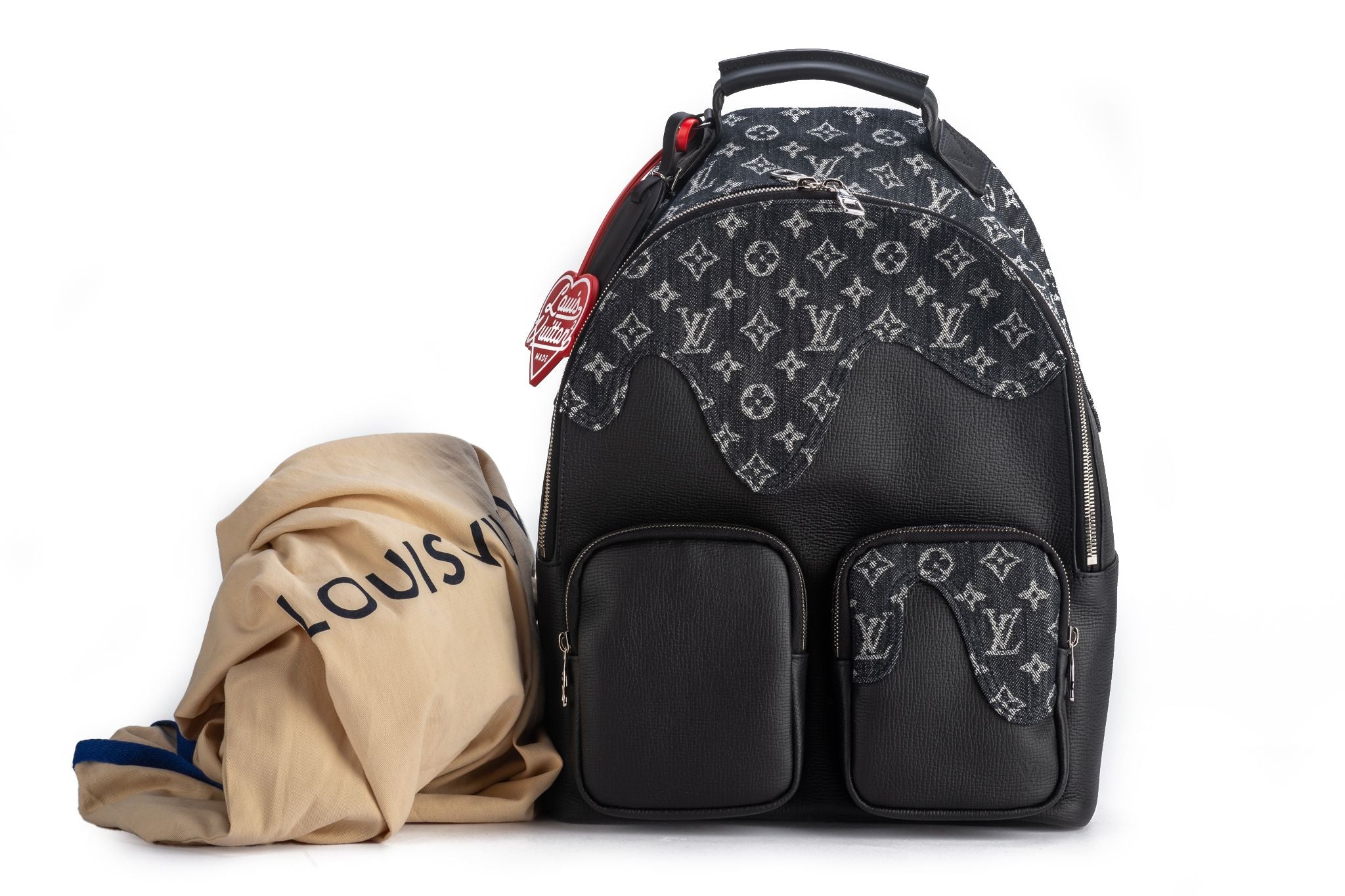 Louis Vuitton collaboration with artist Nigo, capsule collection. Made of calfskin and denim. Brand new with original dust cover and box.