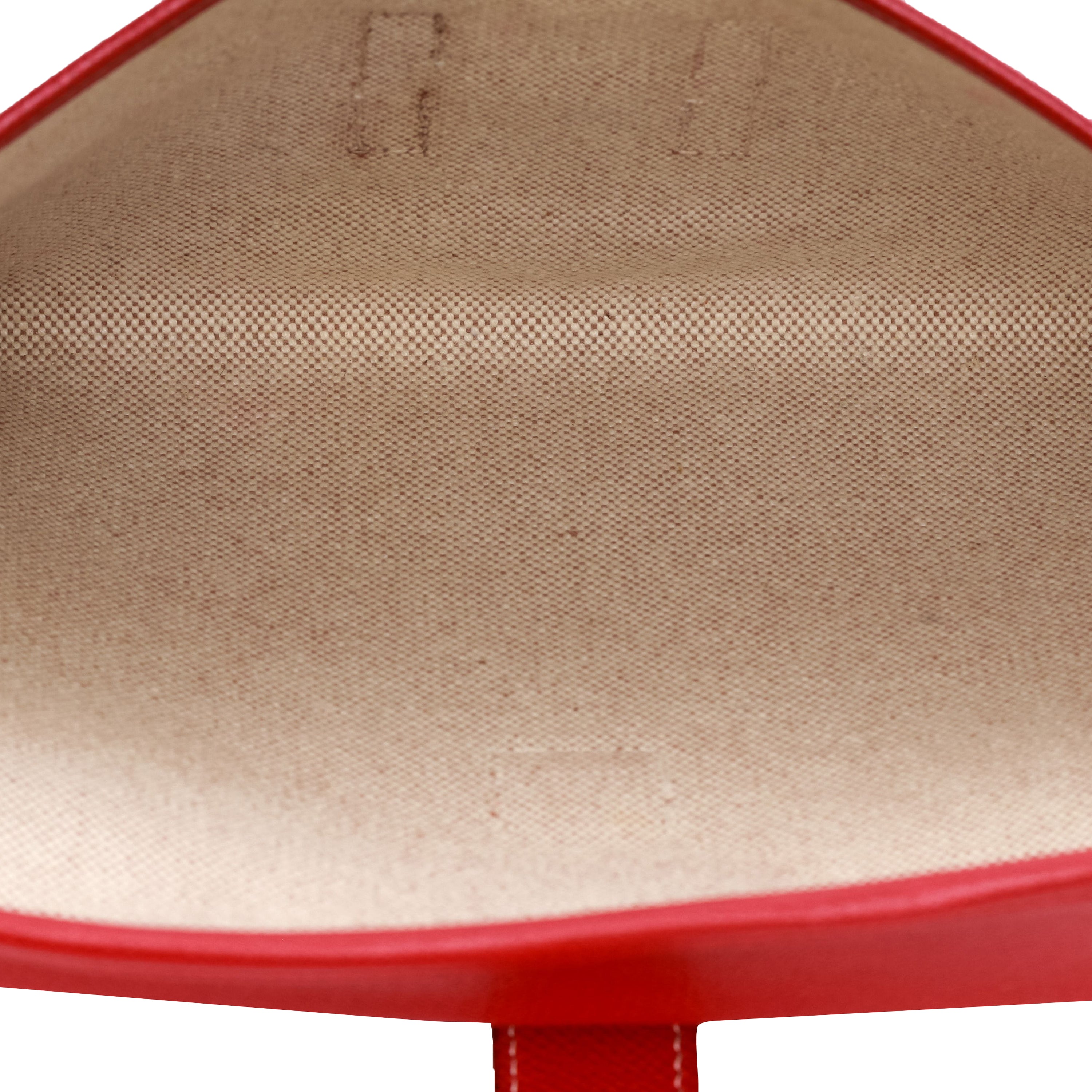Hermès red epsom leather jige clutch. White contrast stitching, toile interior. Comes with original dust bag.