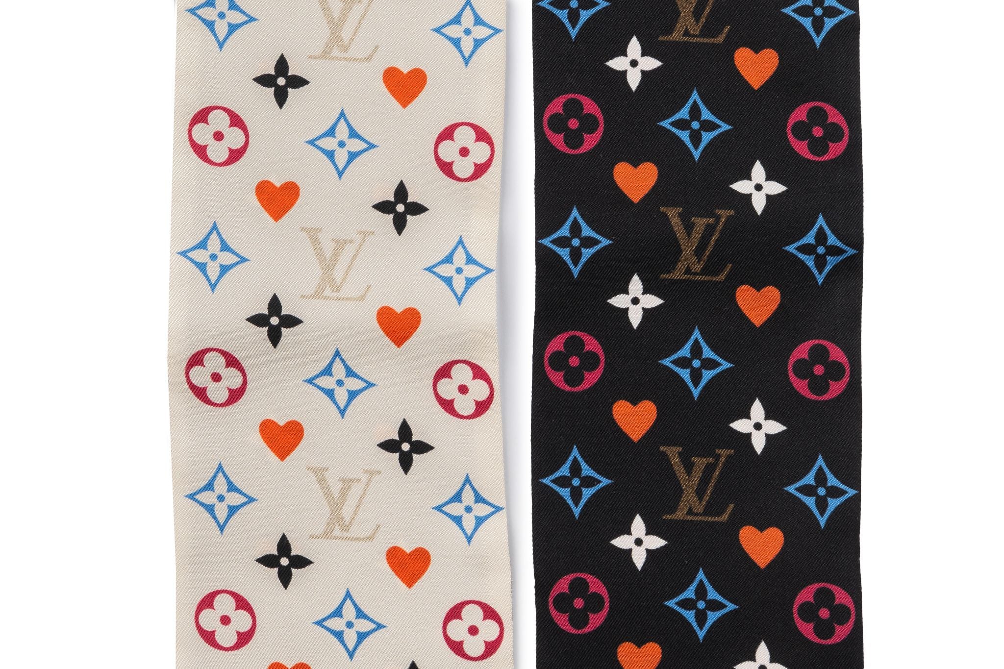 Louis Vuitton 100% Silk bandeau with monogram pattern inspired by Nicolas Ghesquiere's Cruise 2021 line, as well as, the world of card games. Comes without box.