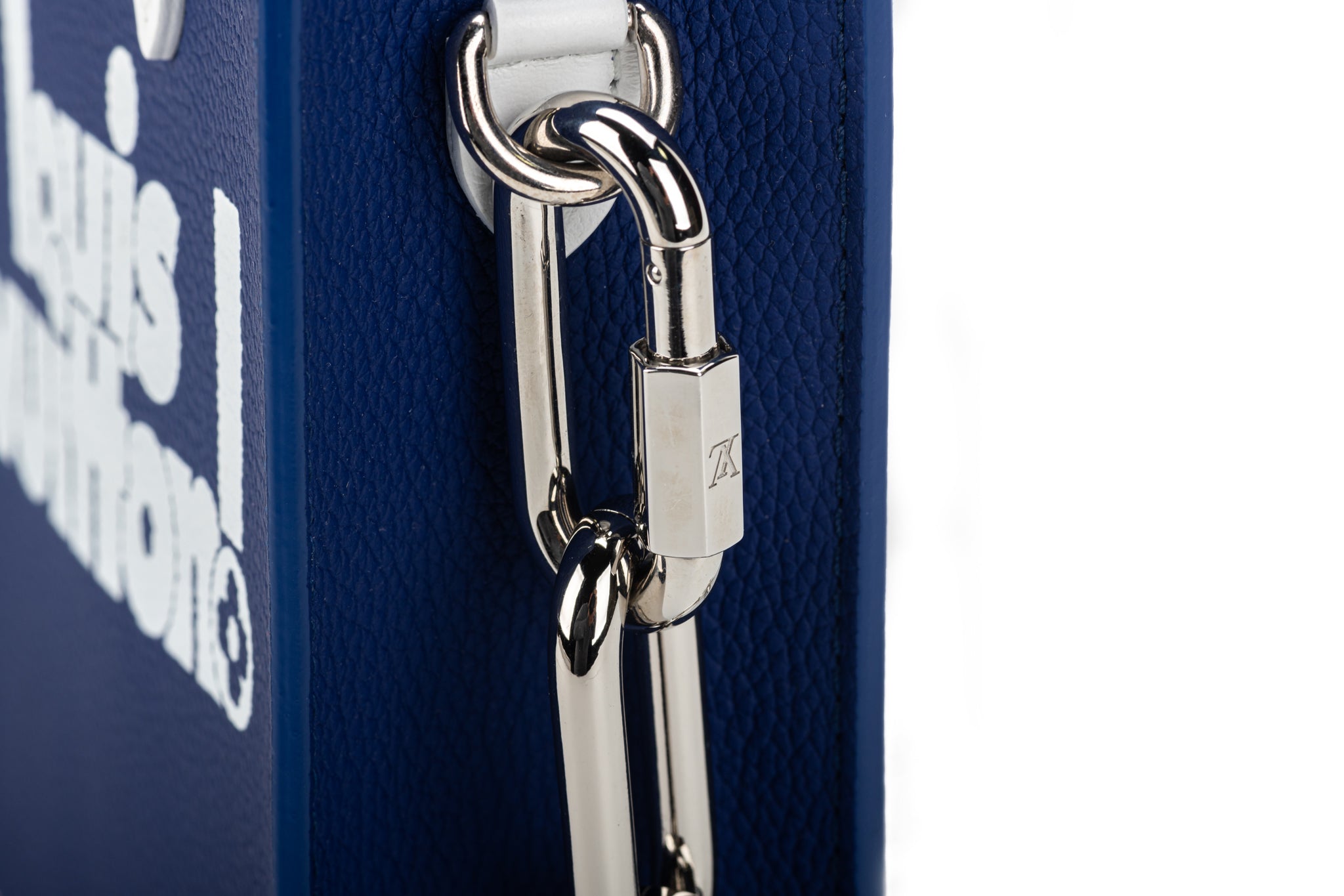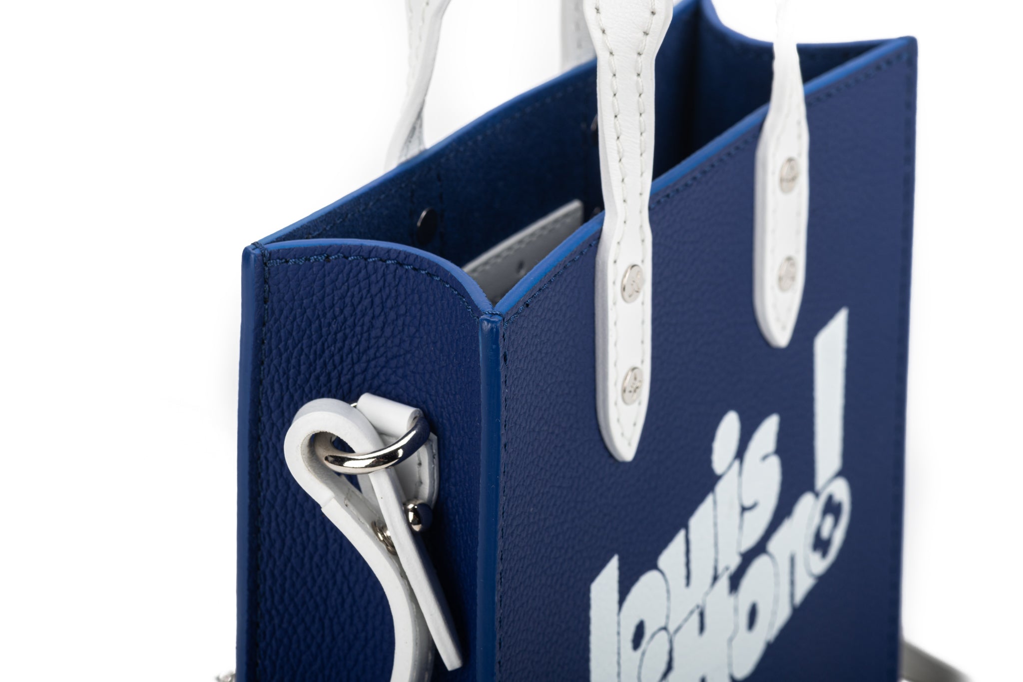 Louis Vuitton Virgil Abloh Blue Cowhide Everyday LV Sac Plat XS Silver Hardware from 2021. The bag is lined with tonal microfiber and includes a shoulder strap. The item is new and comes with the dustcover and box.