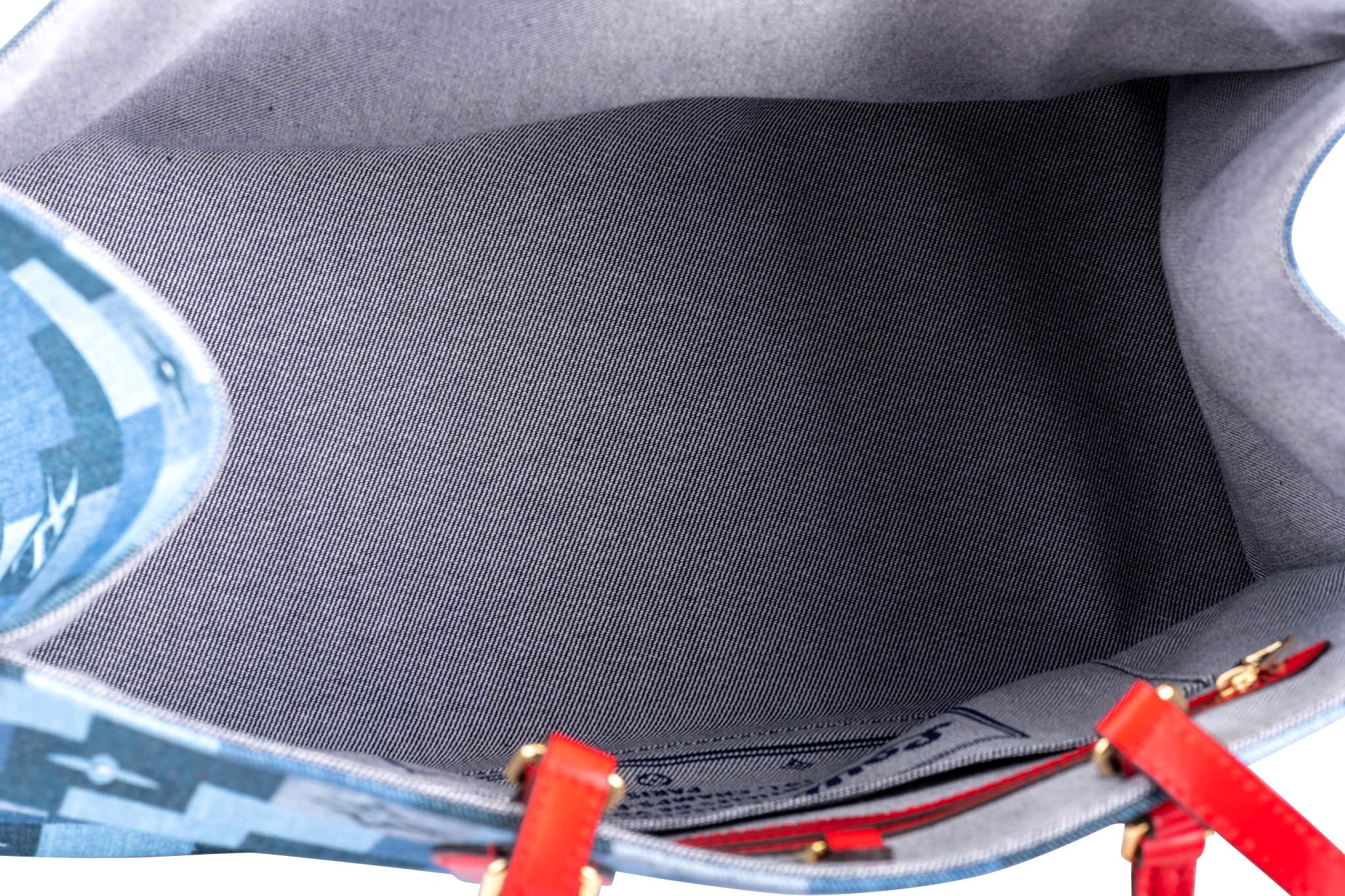 Brand new limited edition denim on the go. Double straps in red leather , shoulder and handle. This item includes a dust cover and box.