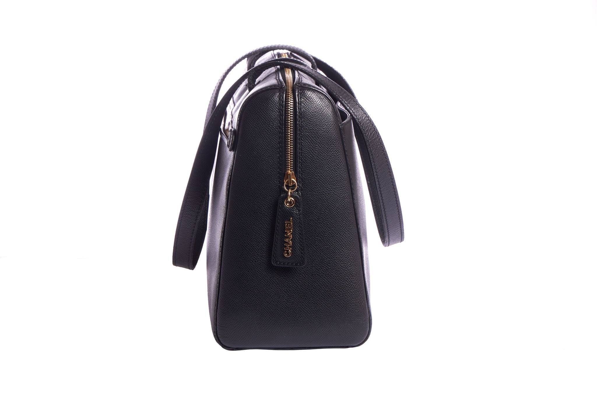 Chanel authentic everyday bag in durable simil epsom leather and gold tone hardware. Top zipper, side open compartment and side zipped compartment. Collection 1997/1999. Handle drop 12". Comes with hologram and generic dust cover.