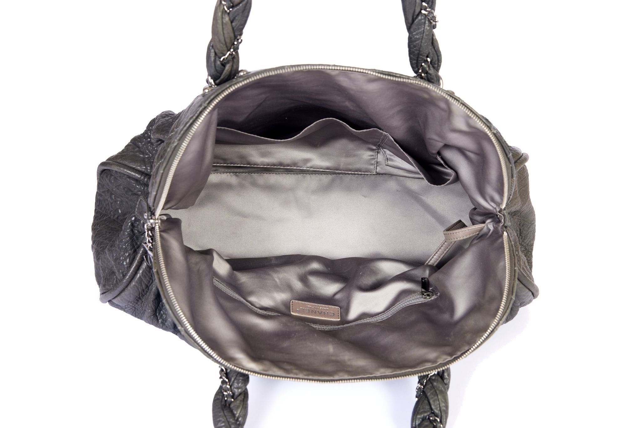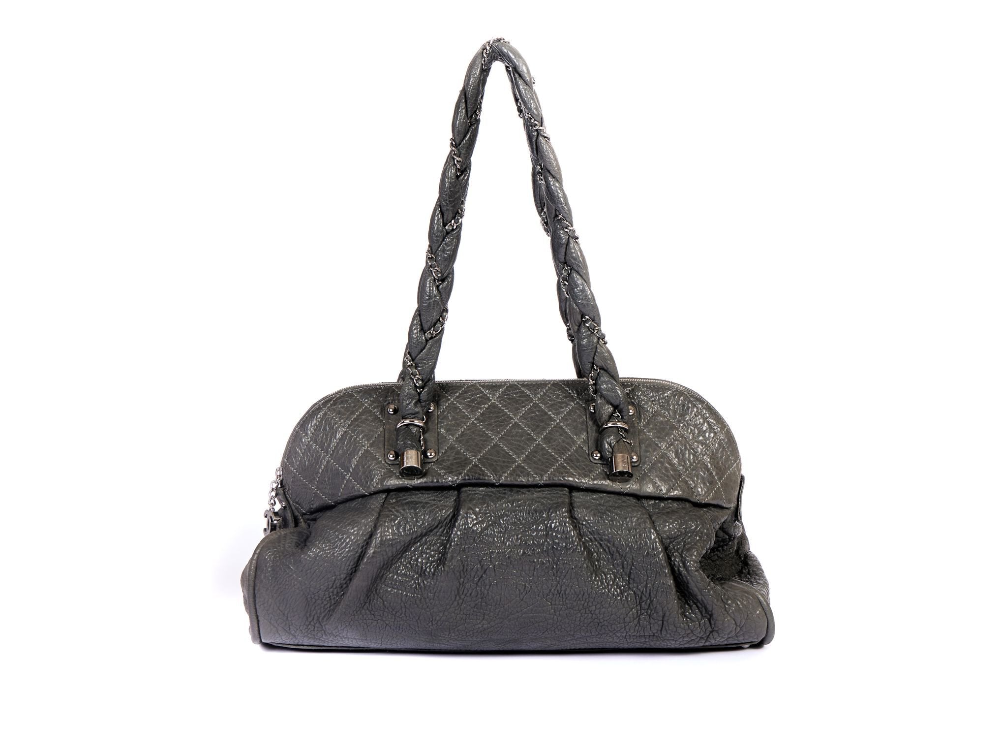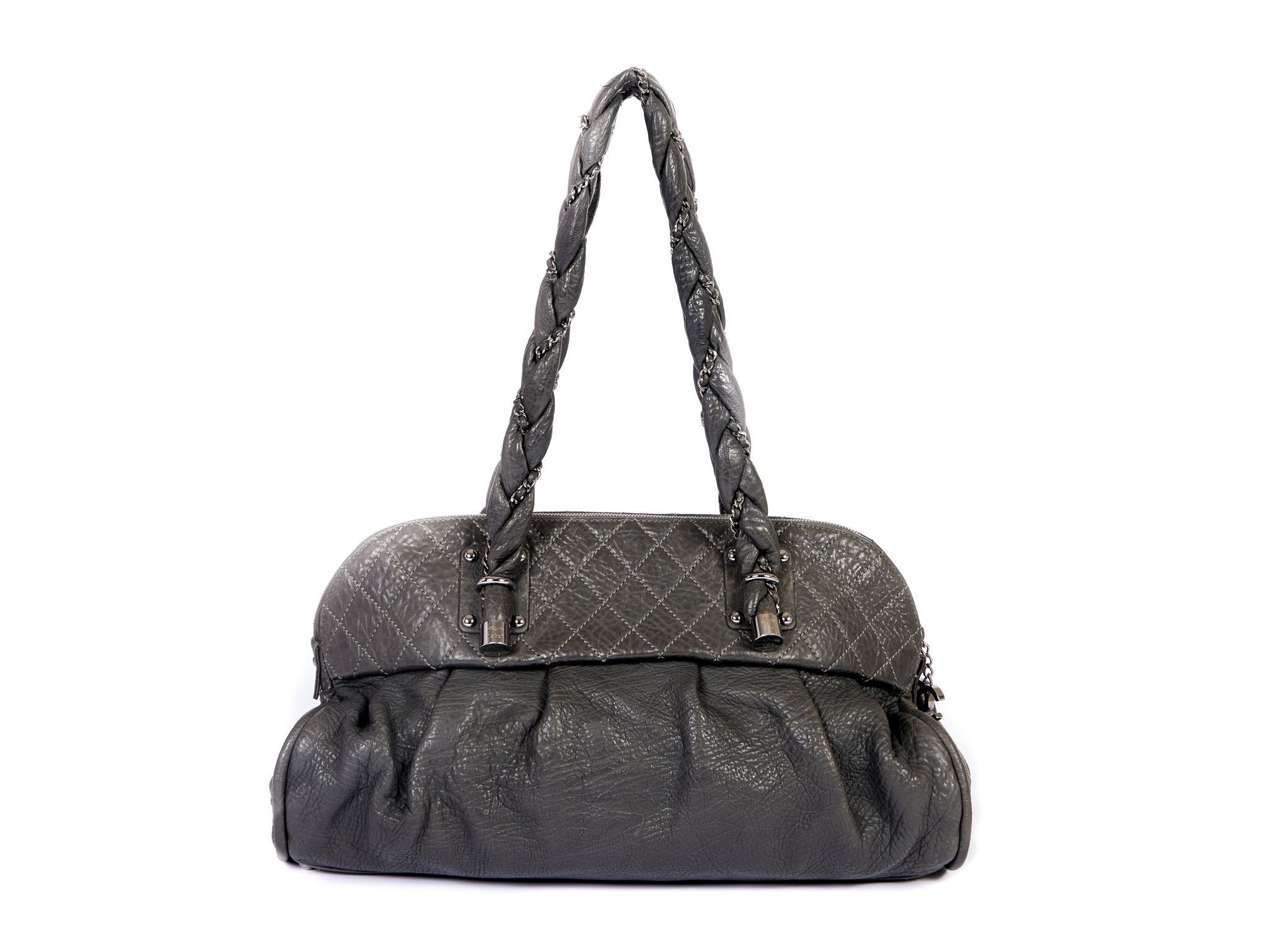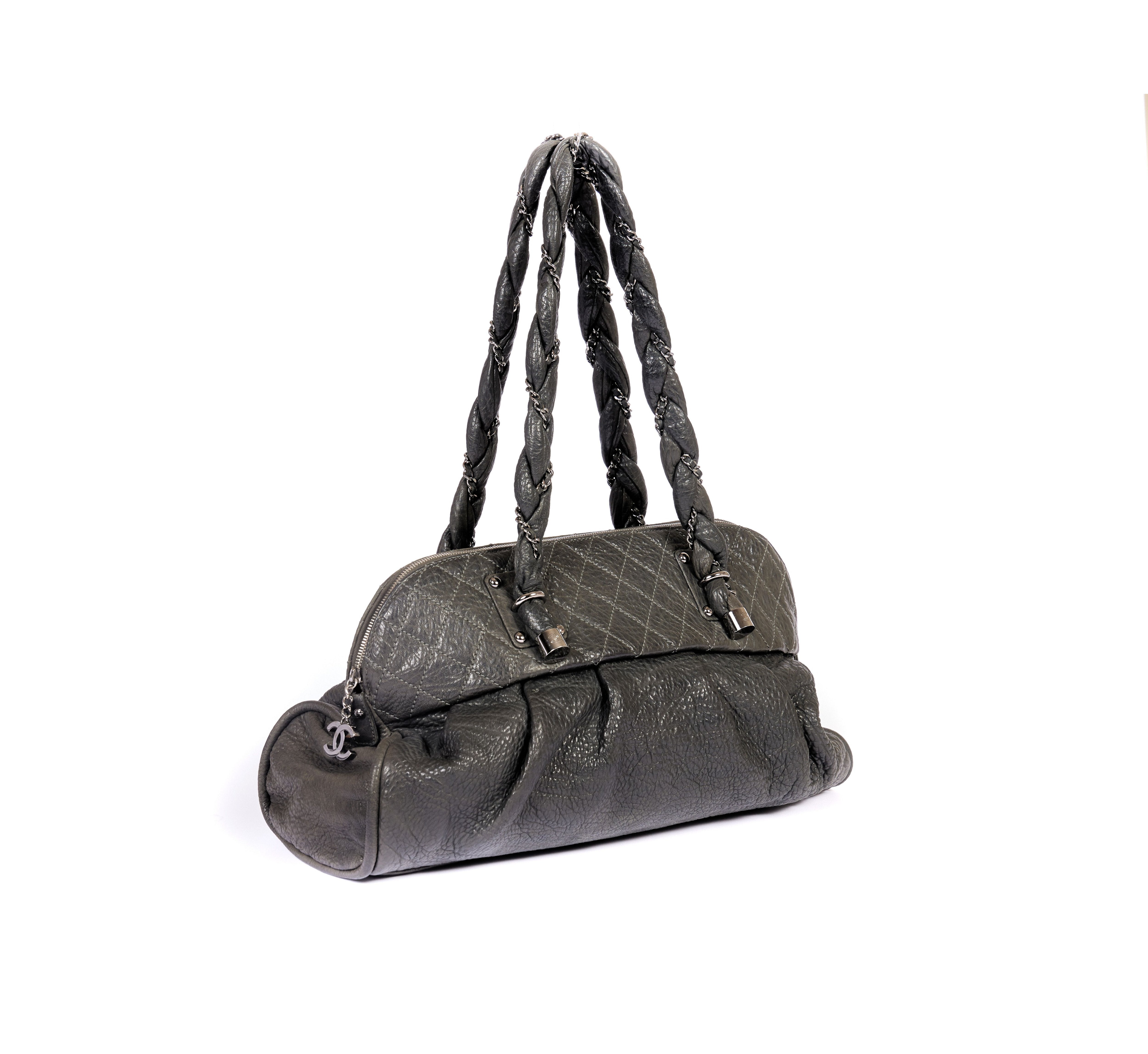 This grey Chanel bag is from the years 2006 to 2008. The tote bag has super soft shoulder chains, the drop length is 11.5 inch. The original booklet and authentication card come with the bag as well as the original hologram. Generic dust cover.