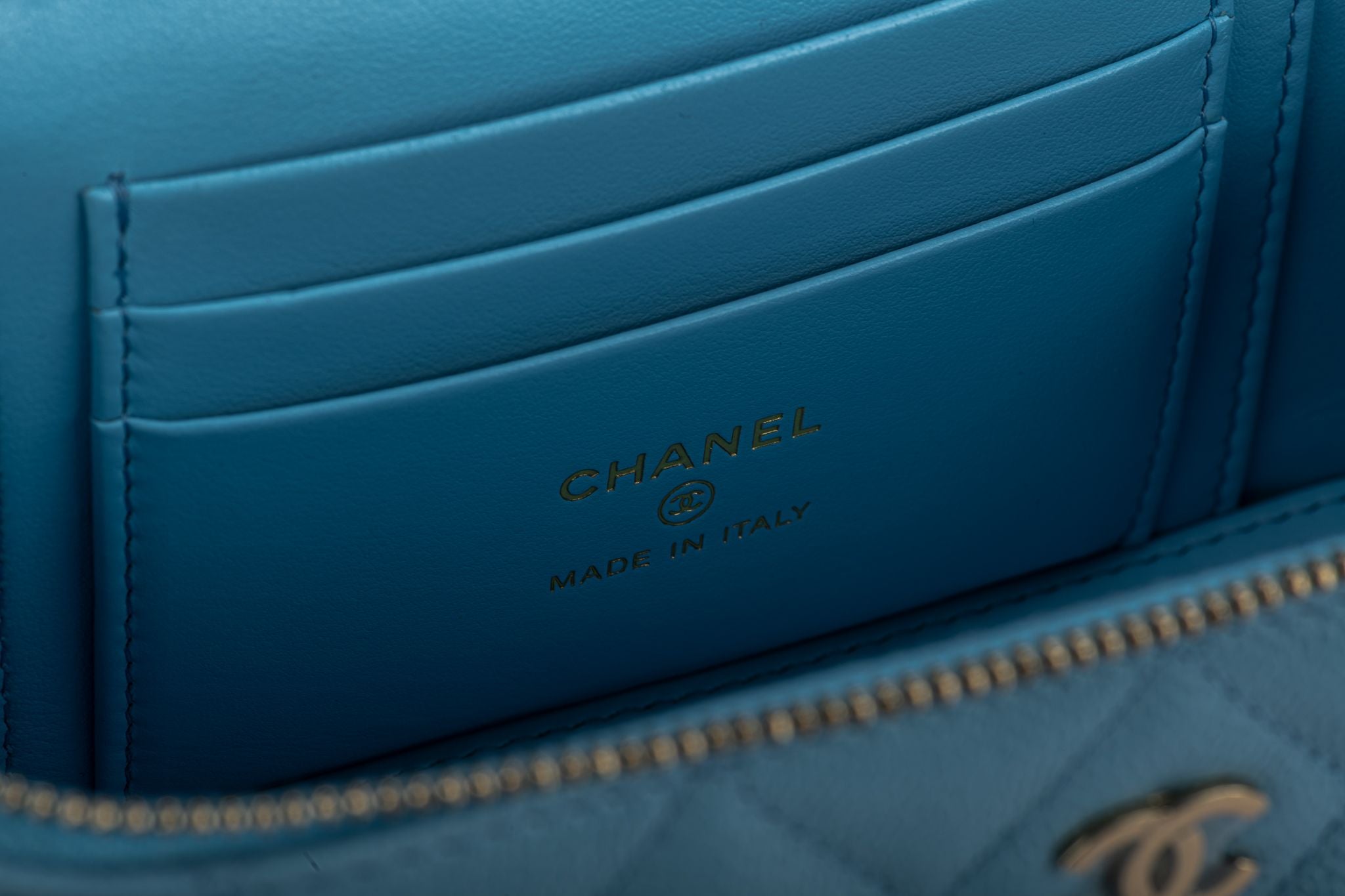 Chanel brand new 2022 collection celeste Lambskin quilted small rectangular trunk bag. Shoulder drop 22”. Serial number 32. Hologram, ID card, dust cover and box.