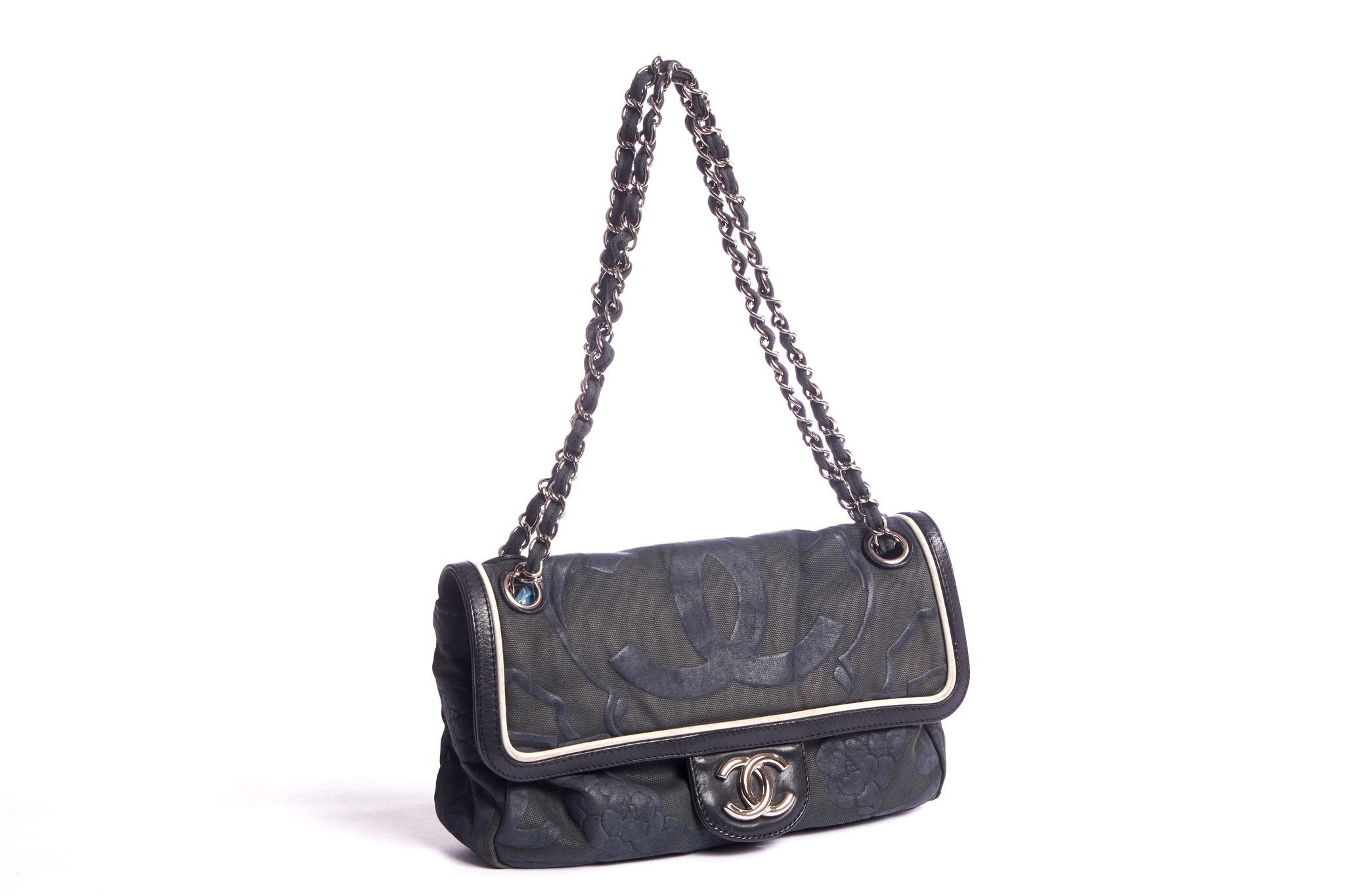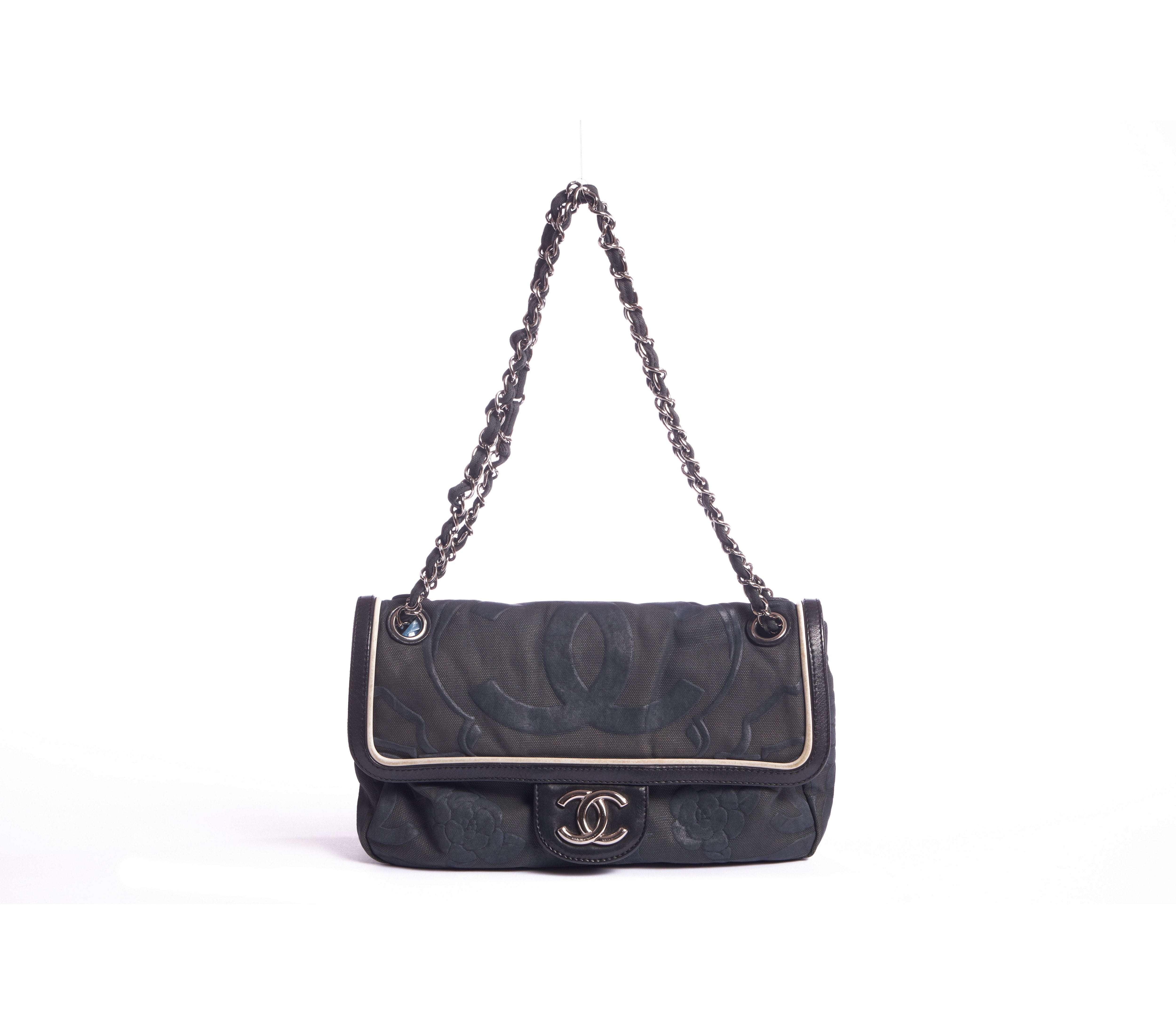 Chanel olive green single flap with black silicon design. Shoulder drop 9.25". Collection 2008/2009. Comes with hologram and original dust cover.