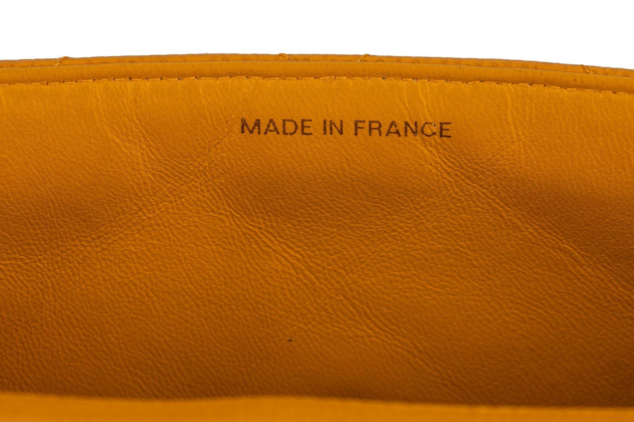 Chanel Turn-Lock Chain Bag Mustard with a CC closure and leather intertwined shoulder strap/cross-body strap. Interior zipper pocket and exterior pocket on back. Comes with an authenticity card and original box. First two numbers 39.