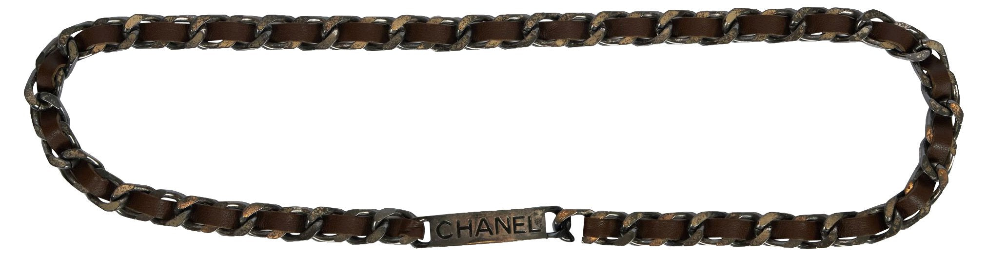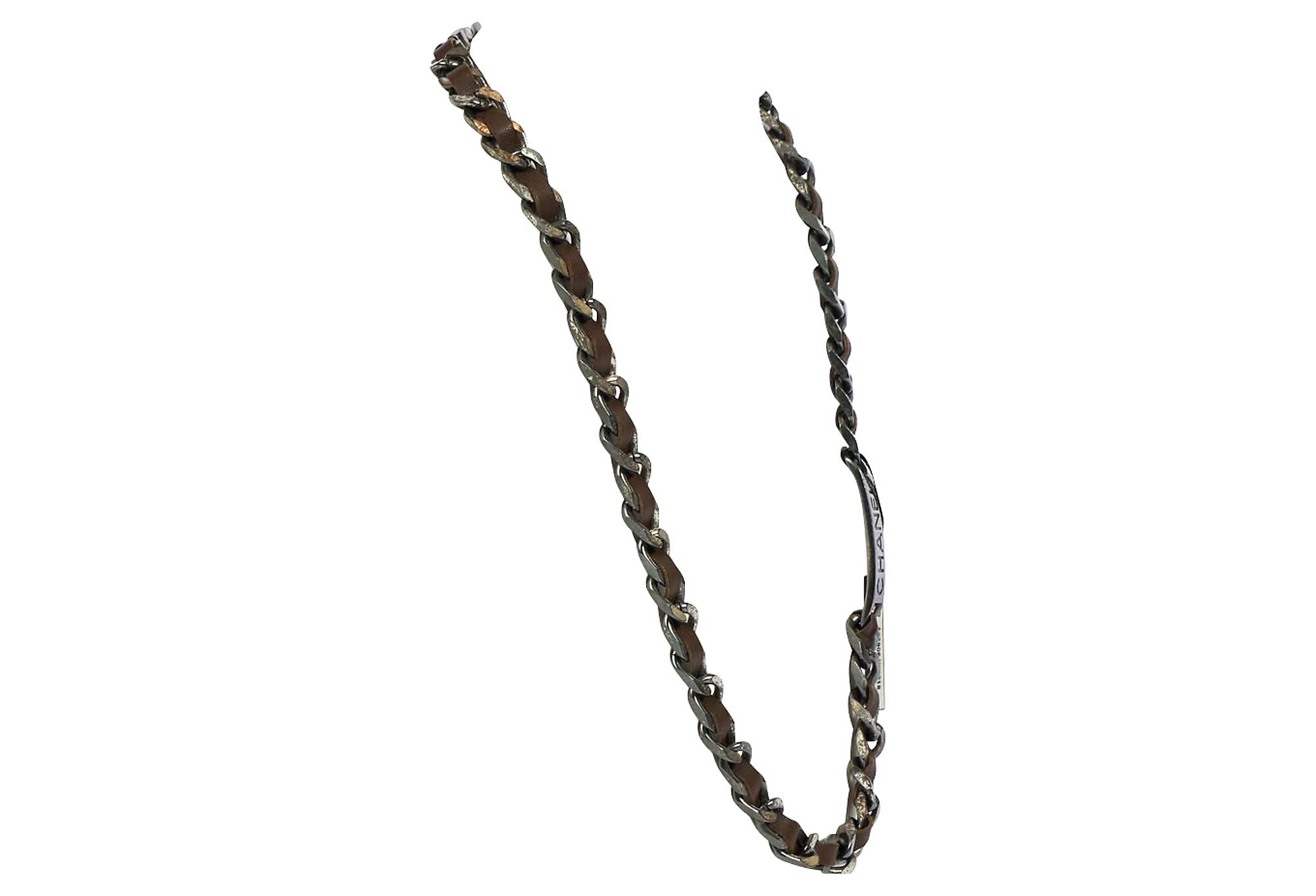 Chanel dark silver and brown leather necklace /belt. Spring 96 collection. Comes with original tag and box.