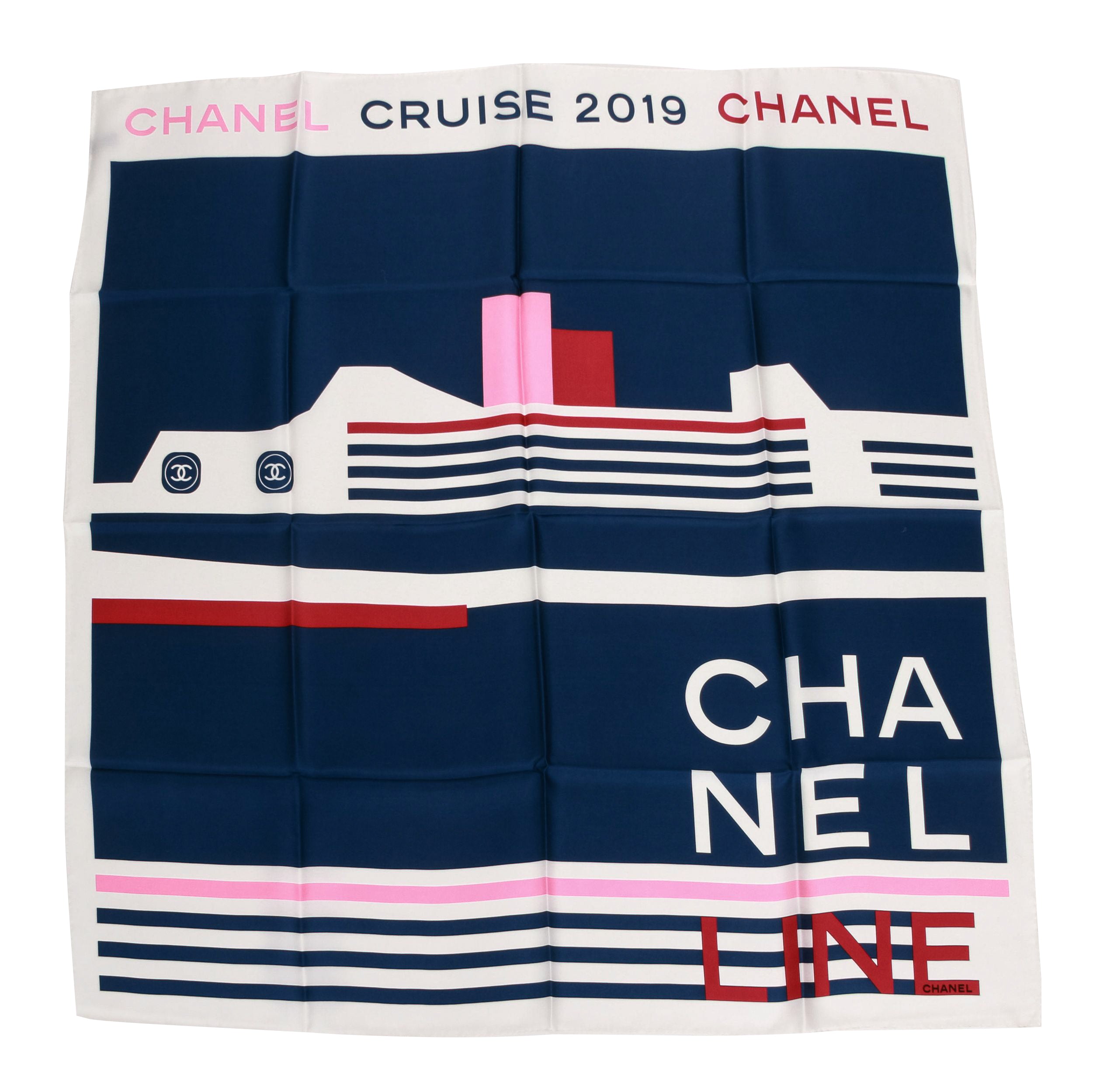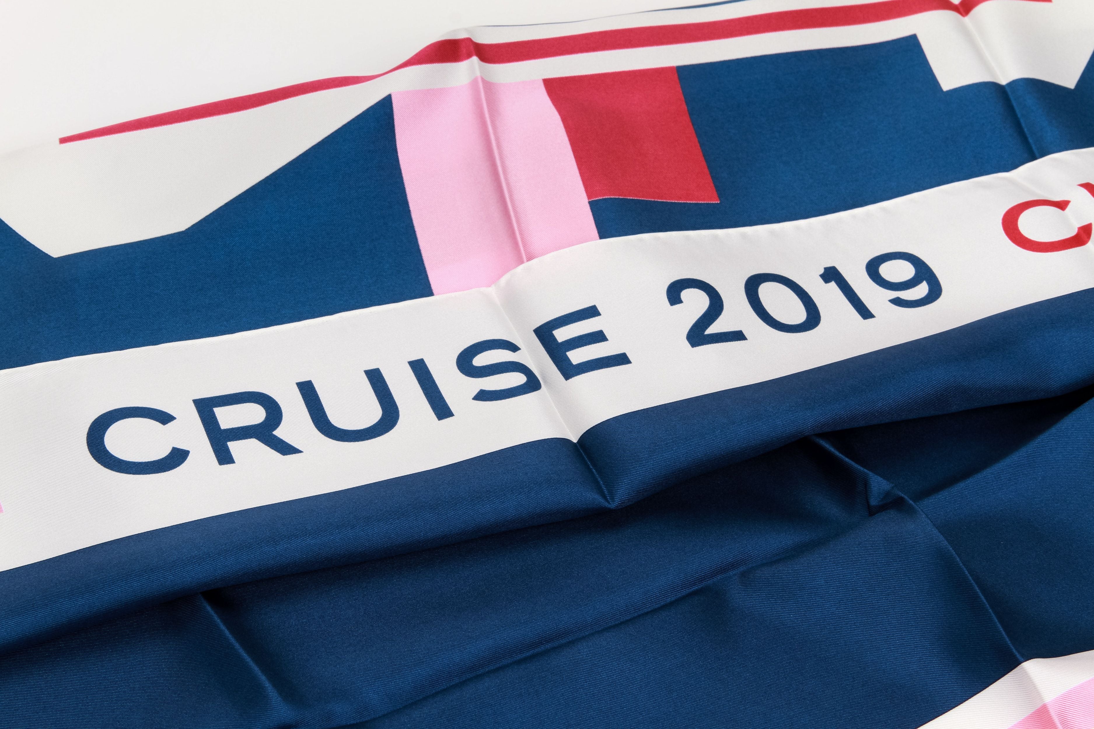 Chanel 2019 cruise collection new blue and white silk scarf.