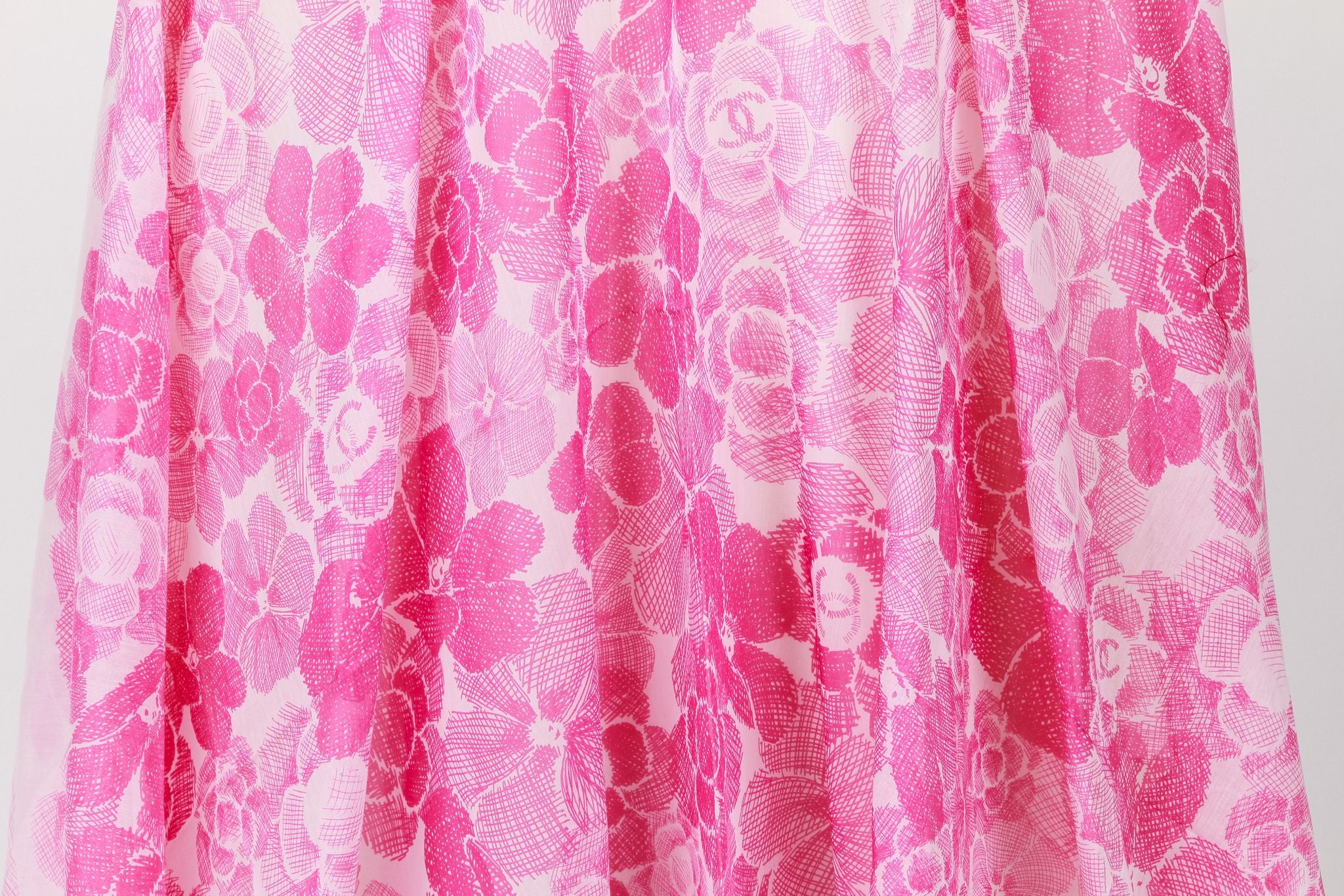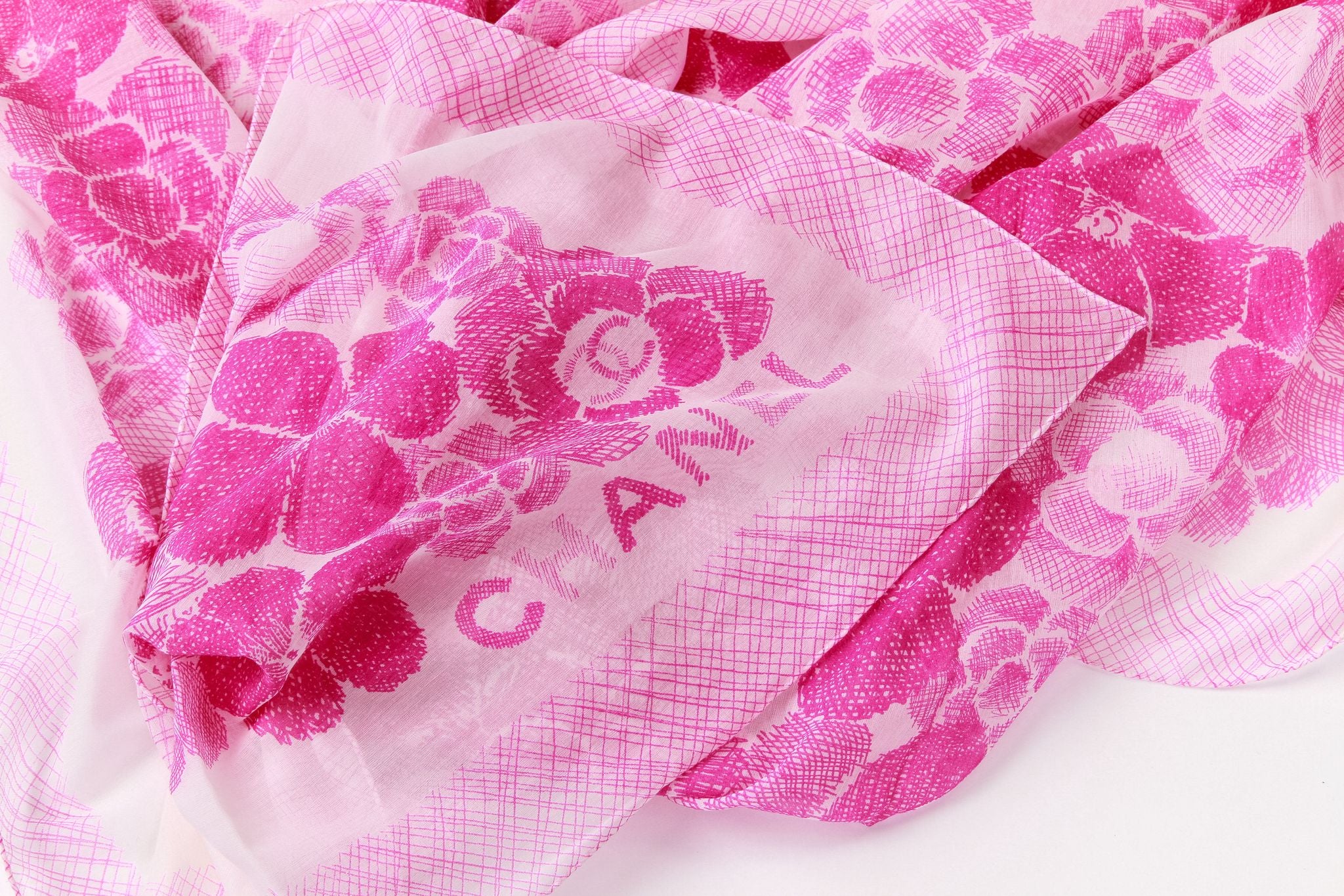 Chanel new oversize fuchsia cotton and silk camellia sarong/shawl, 72" x 52"