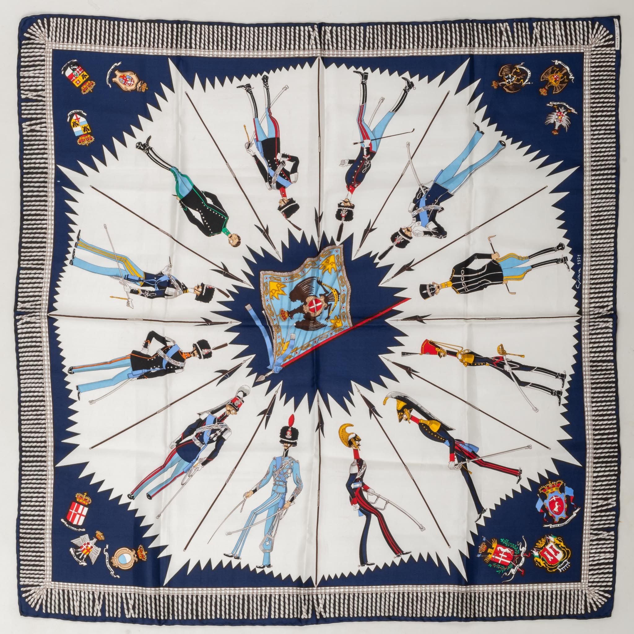 Novostjl Italian company leader in silk fabrics. Soldier design in blue and white combination.