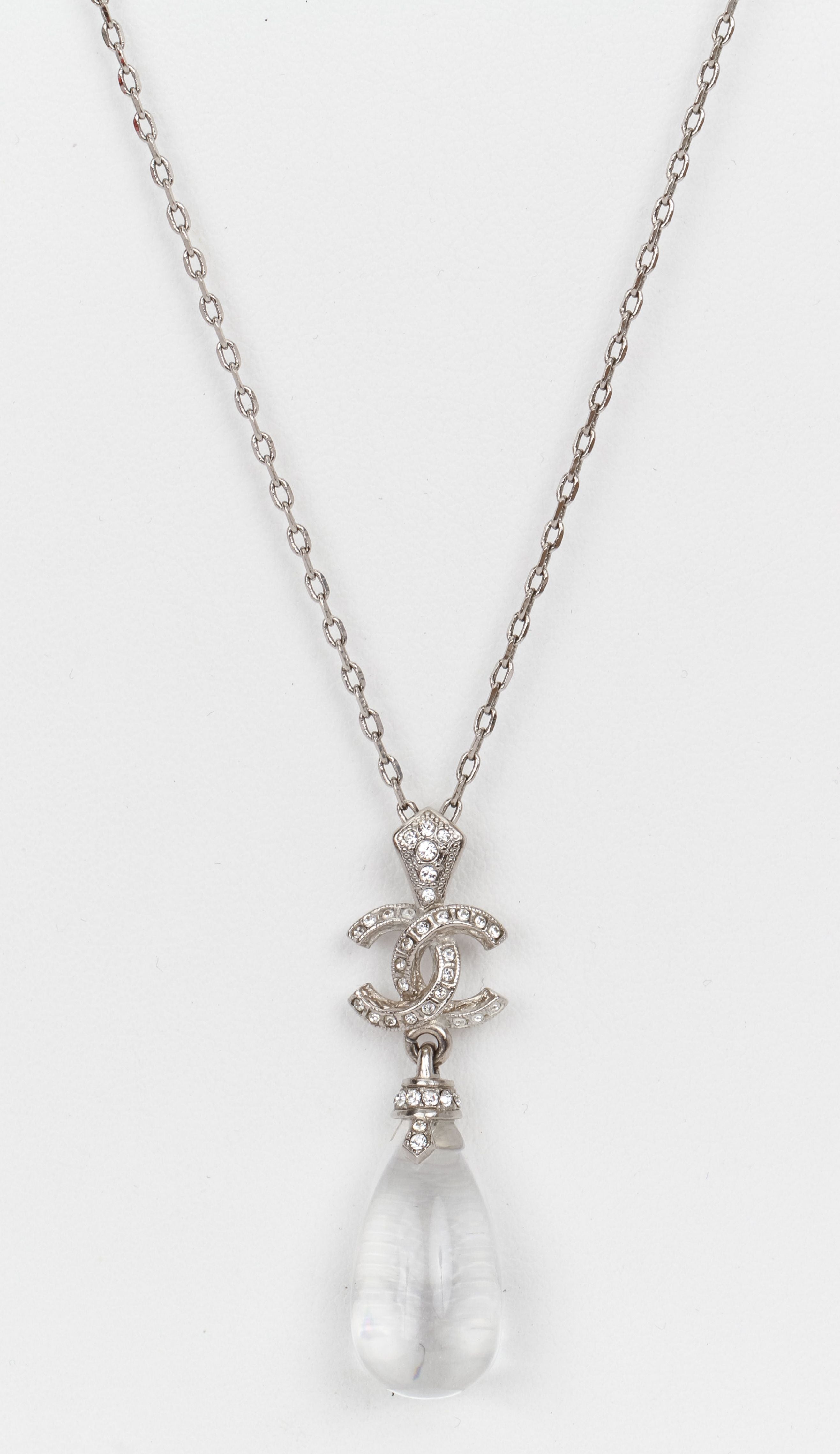 Chanel lucite drop necklace , L 23.5, pendant L 2”, comes with original box
