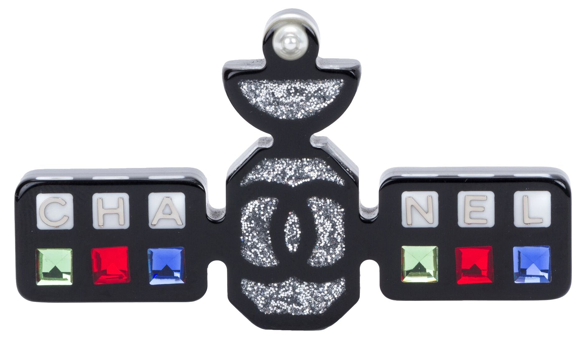 Condition: ExcellentEra: Contemporary; 2000s: 2.2" L x 1.7" WMaterials: Metal, glassColor: silver, white, greyChanel Pin...