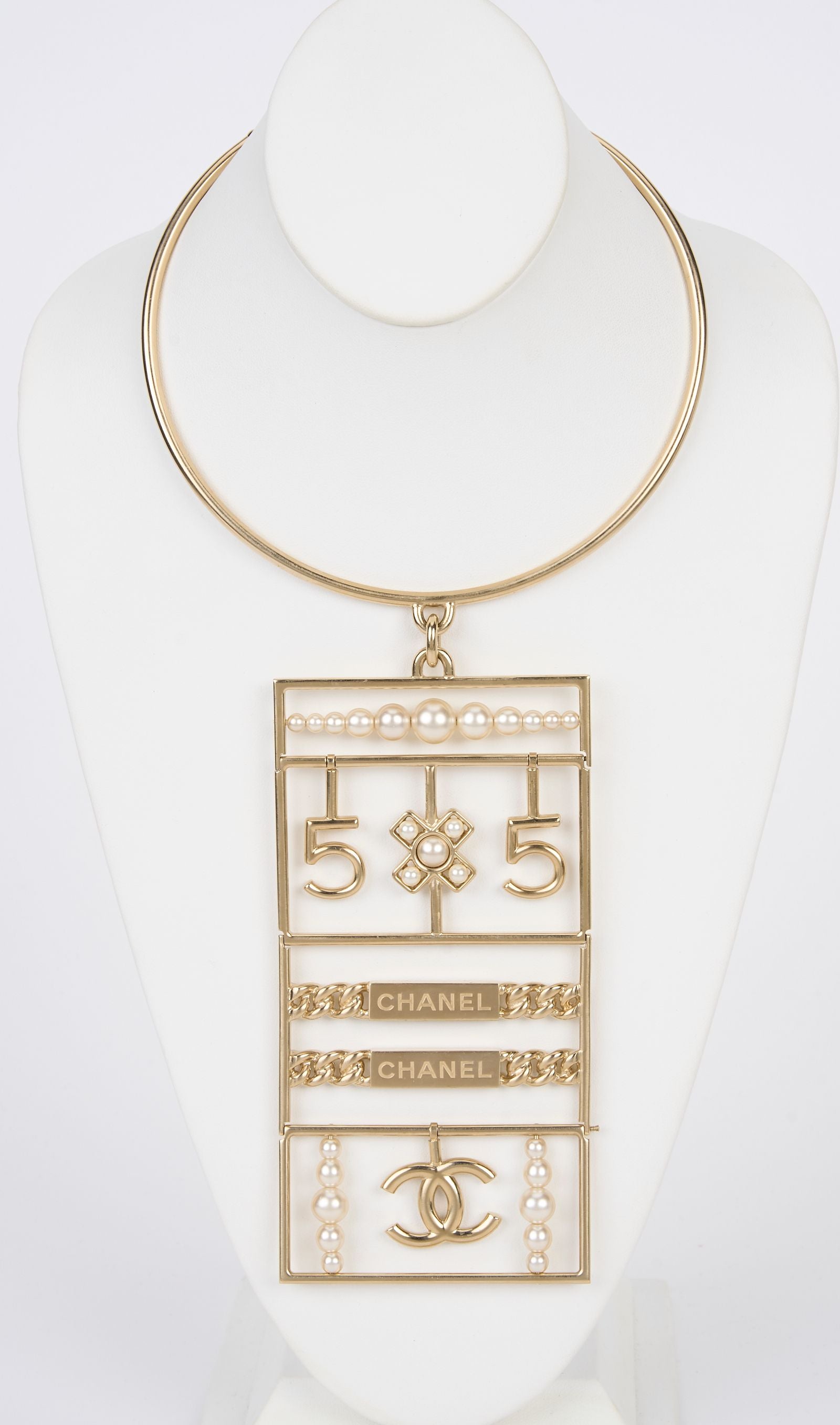 Stunning original Chanel oversize pendant necklace. Rigid light gold metal chocker with extension back chain. Gripoix pearl coated beads. Spring summer 2015 Collection. Pendant dimensions 6.5" x 3.2". Brand new with original box .
