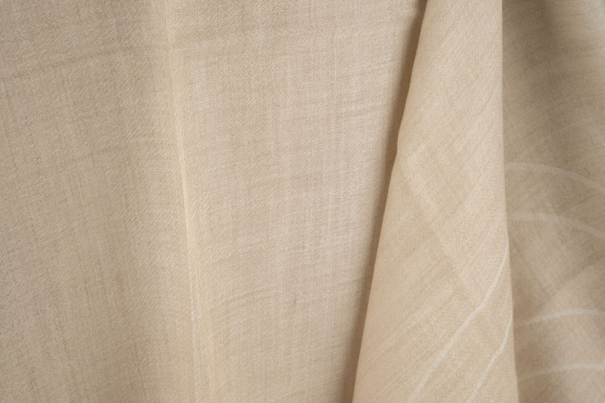 This Chanel Beige Cashmere Shawl is in a beautiful natural tone and features a fringed edge that will complement any outfit.