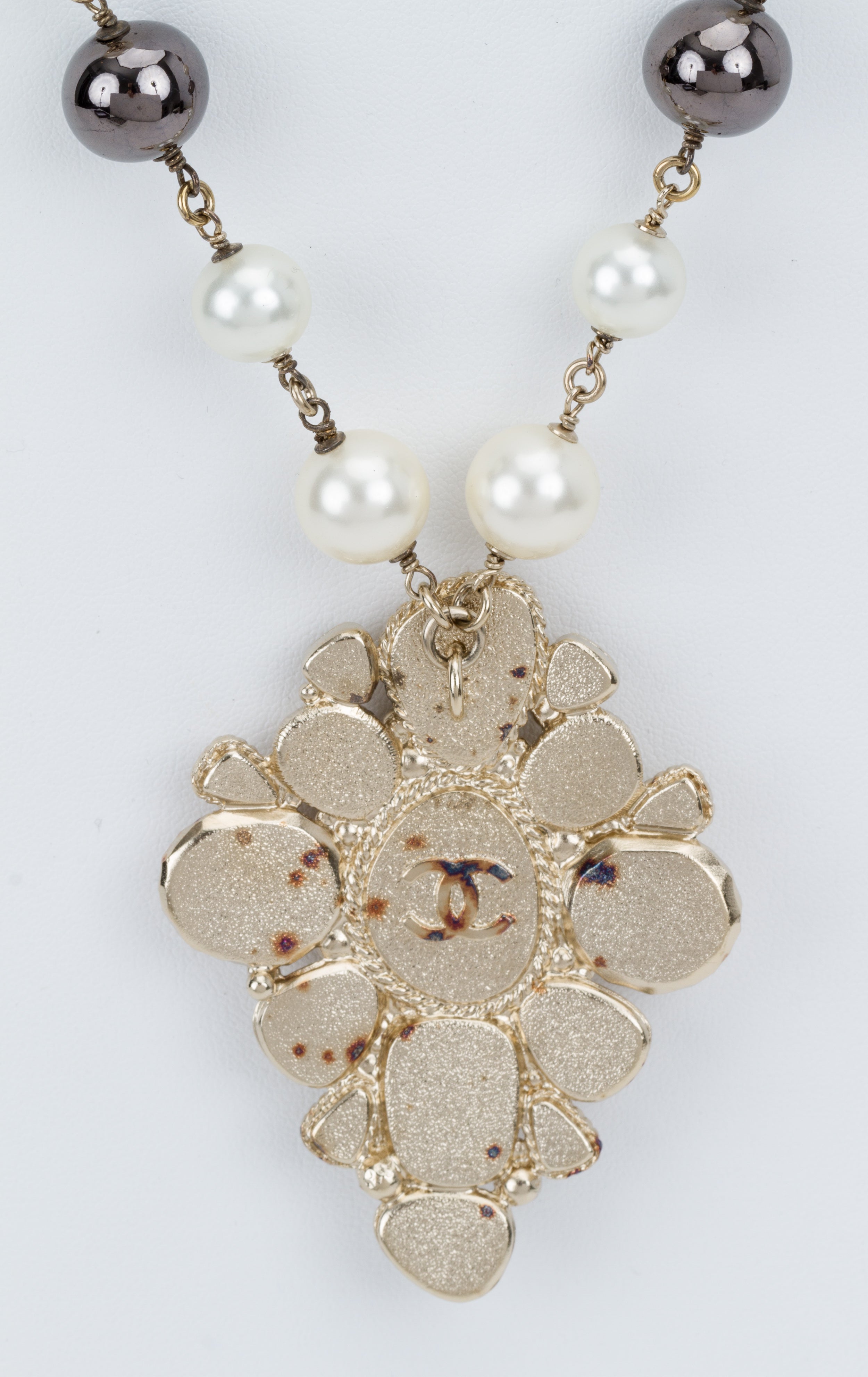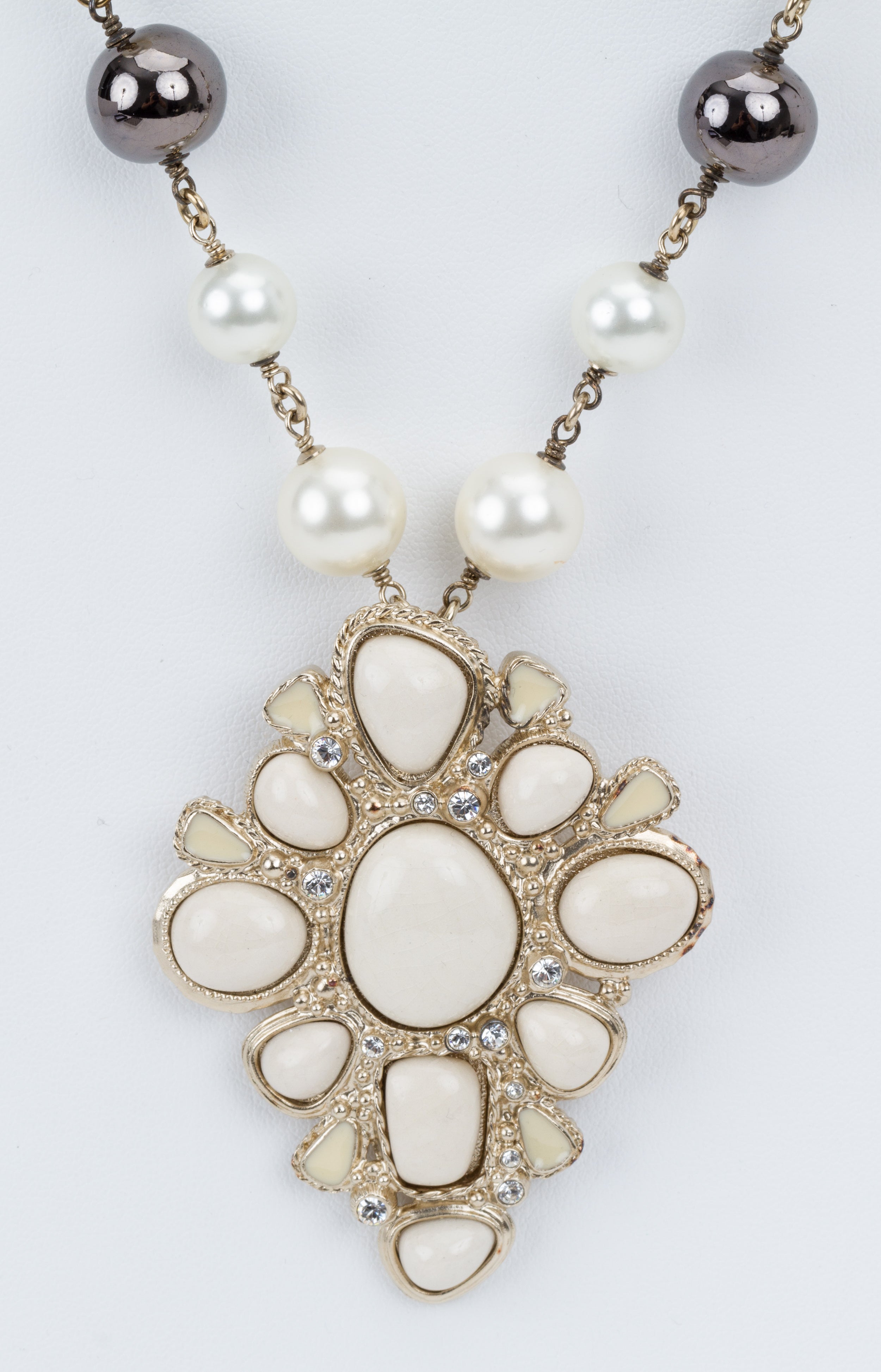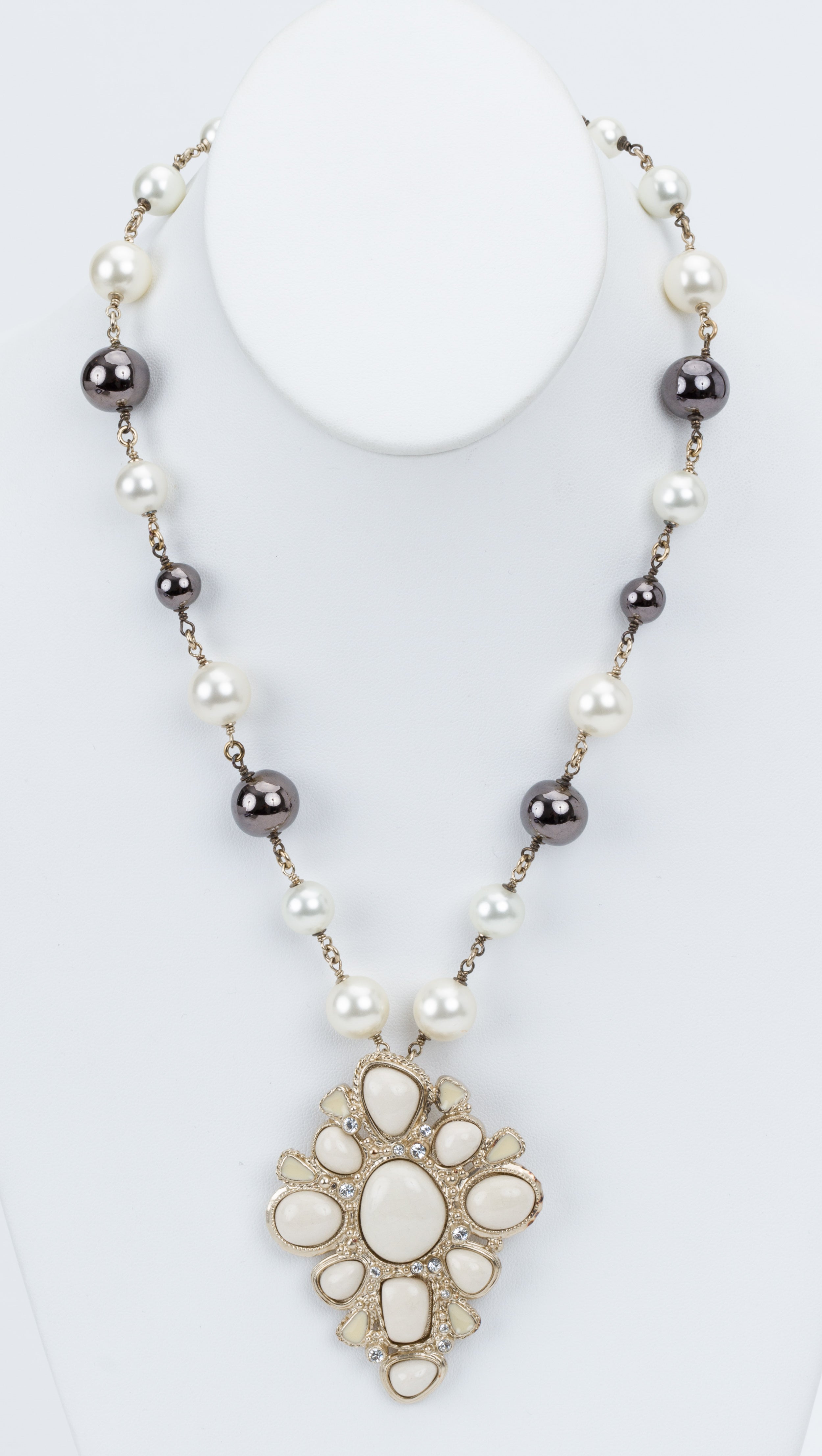 Chanel White & Gray Pendant Necklace