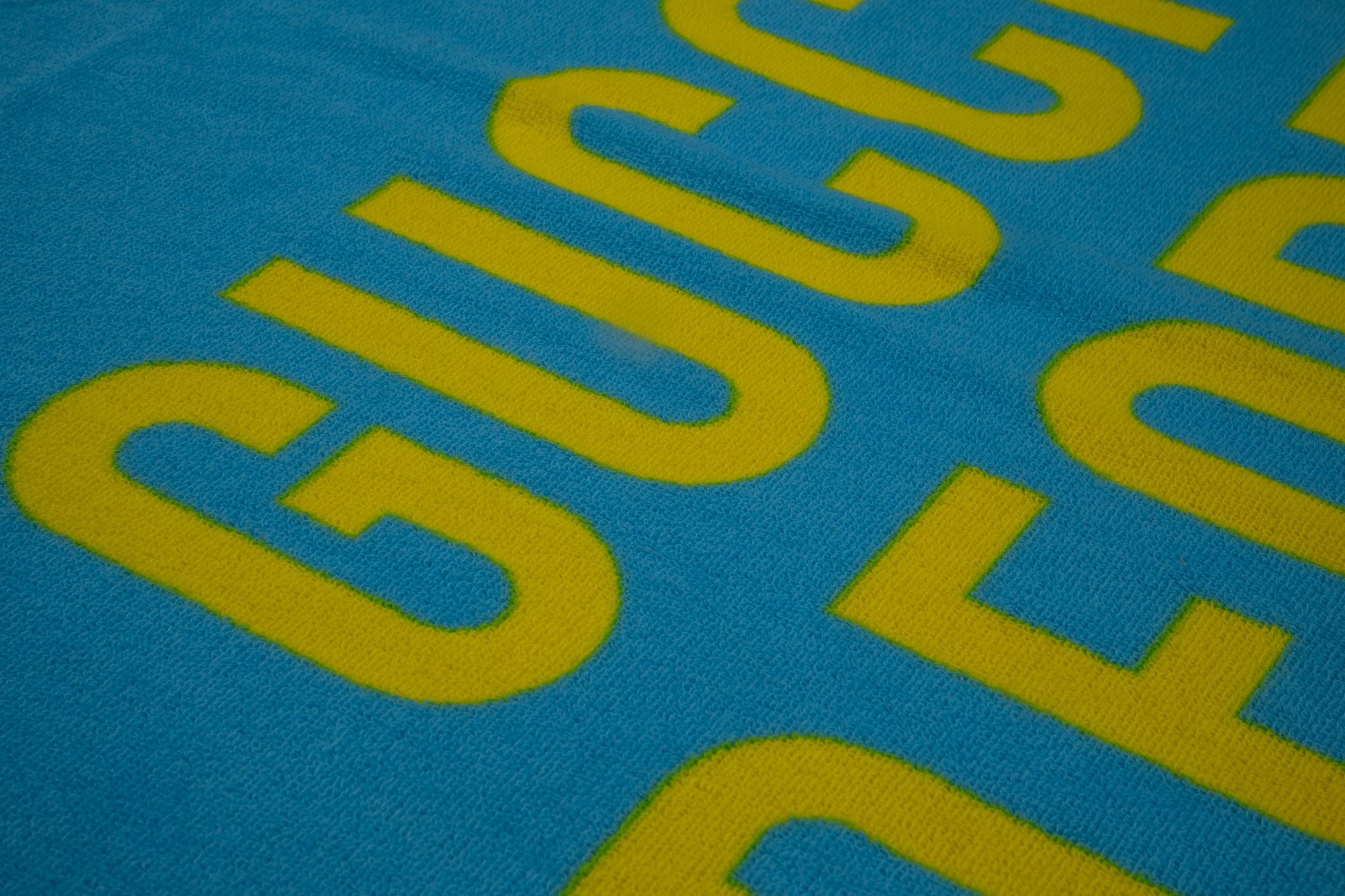 This Gucci Rare Chinese New Year beach towel in blue. Please note, in the back there is a line of colour, please refer to photo.