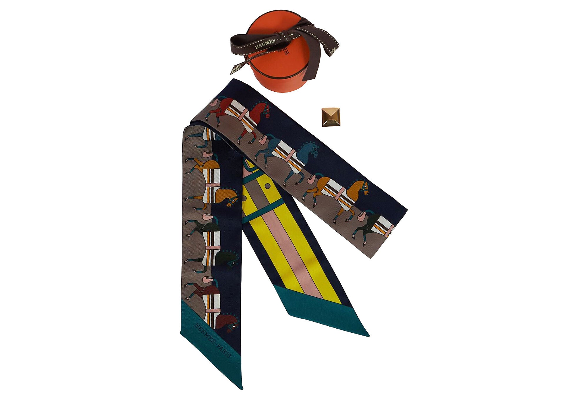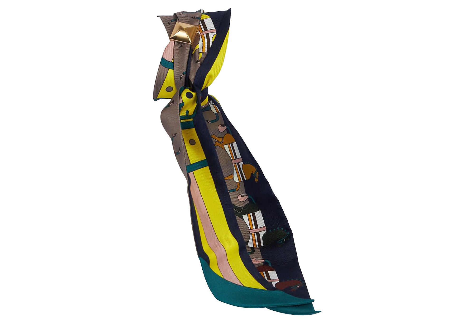 Hermes black dressage horses twilly scarf with hardware. Comes in box. Dry-clean only.