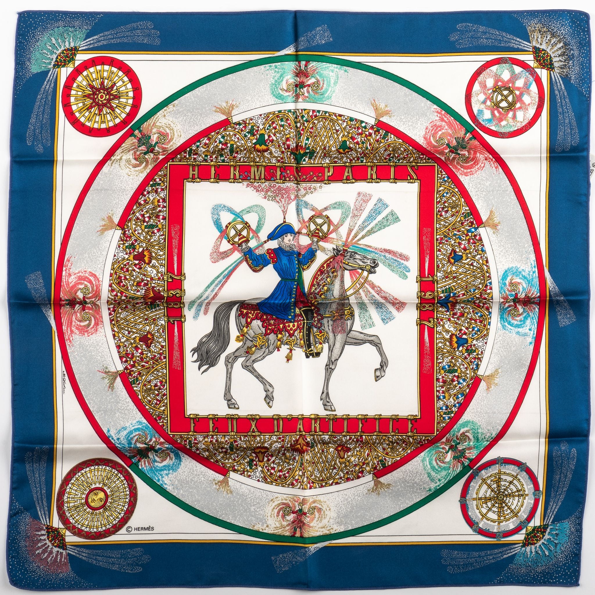 Hermès new blue feux d artifice silk gavroche scarf. Hand rolled edges.