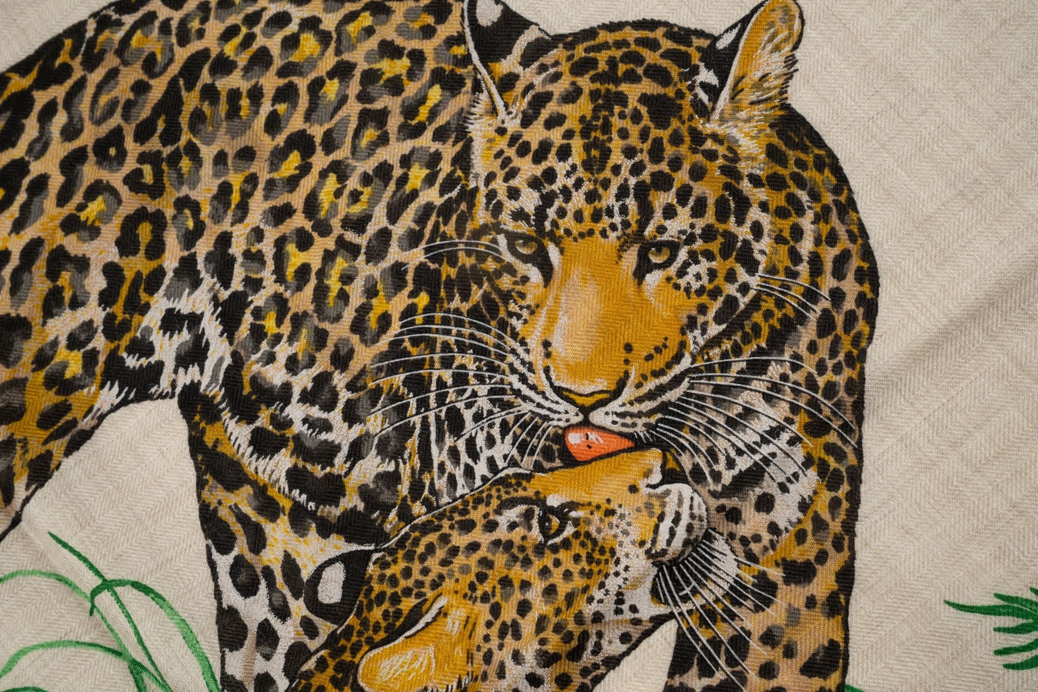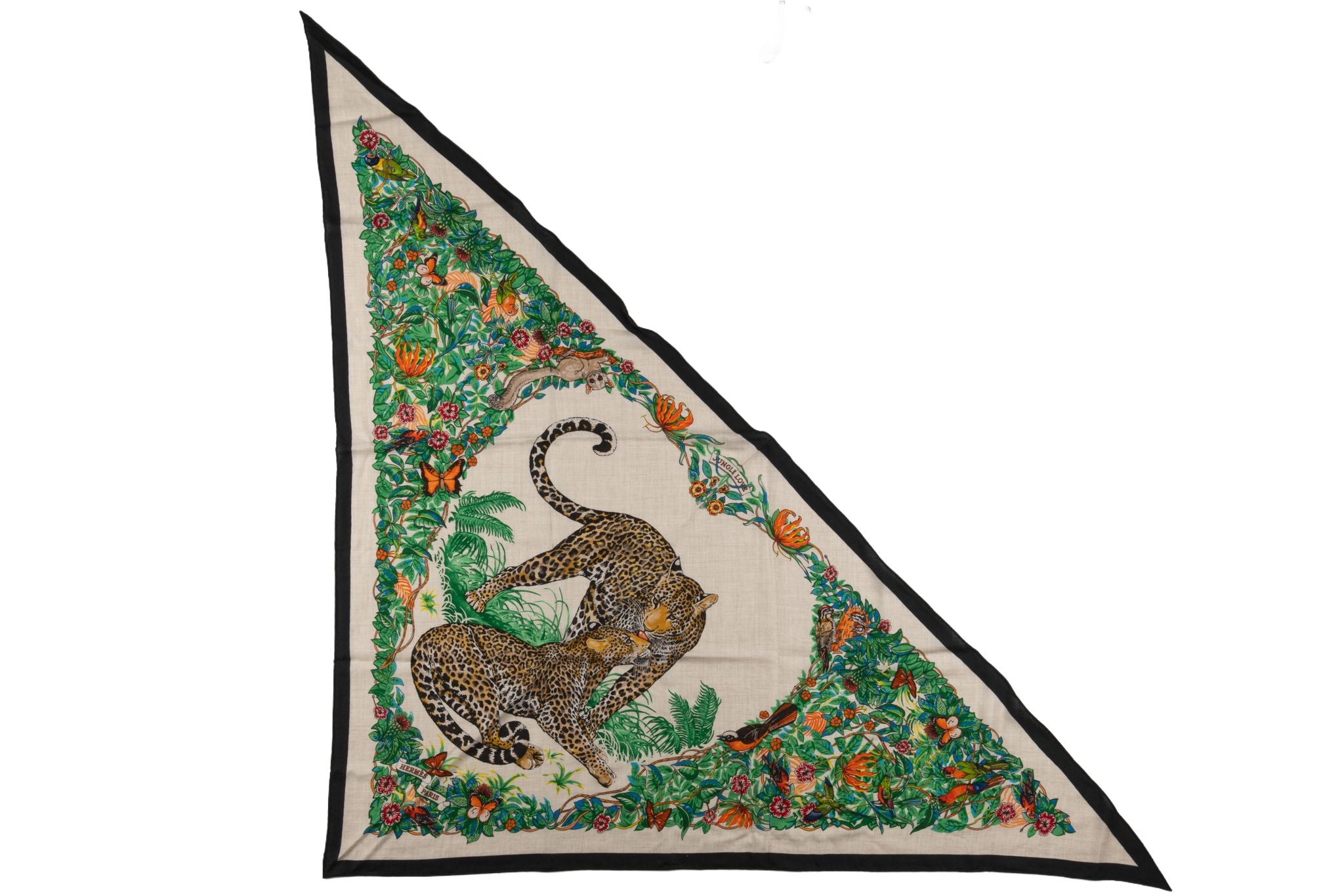 Hermès "Jungle Love" Giant Triangle is from cashmere and silk with hand-rolled edges (70% cashmere, 30% silk).Designed by Robert Dallet Comes with ribbon and original box.