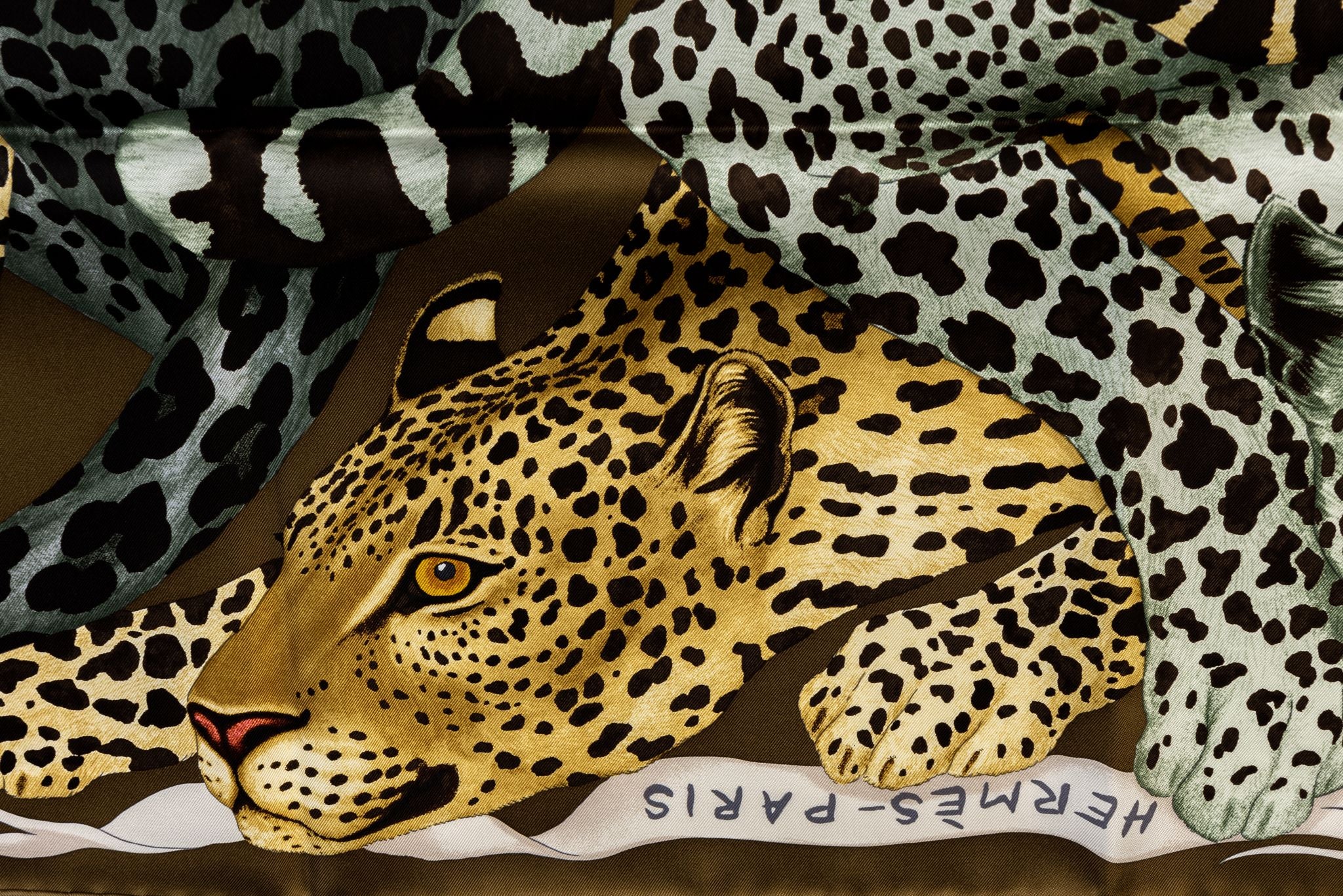 Hermès new Lazy Leopardess silk scarf . Bronze color way. Hand rolled edges. Comes with original box.