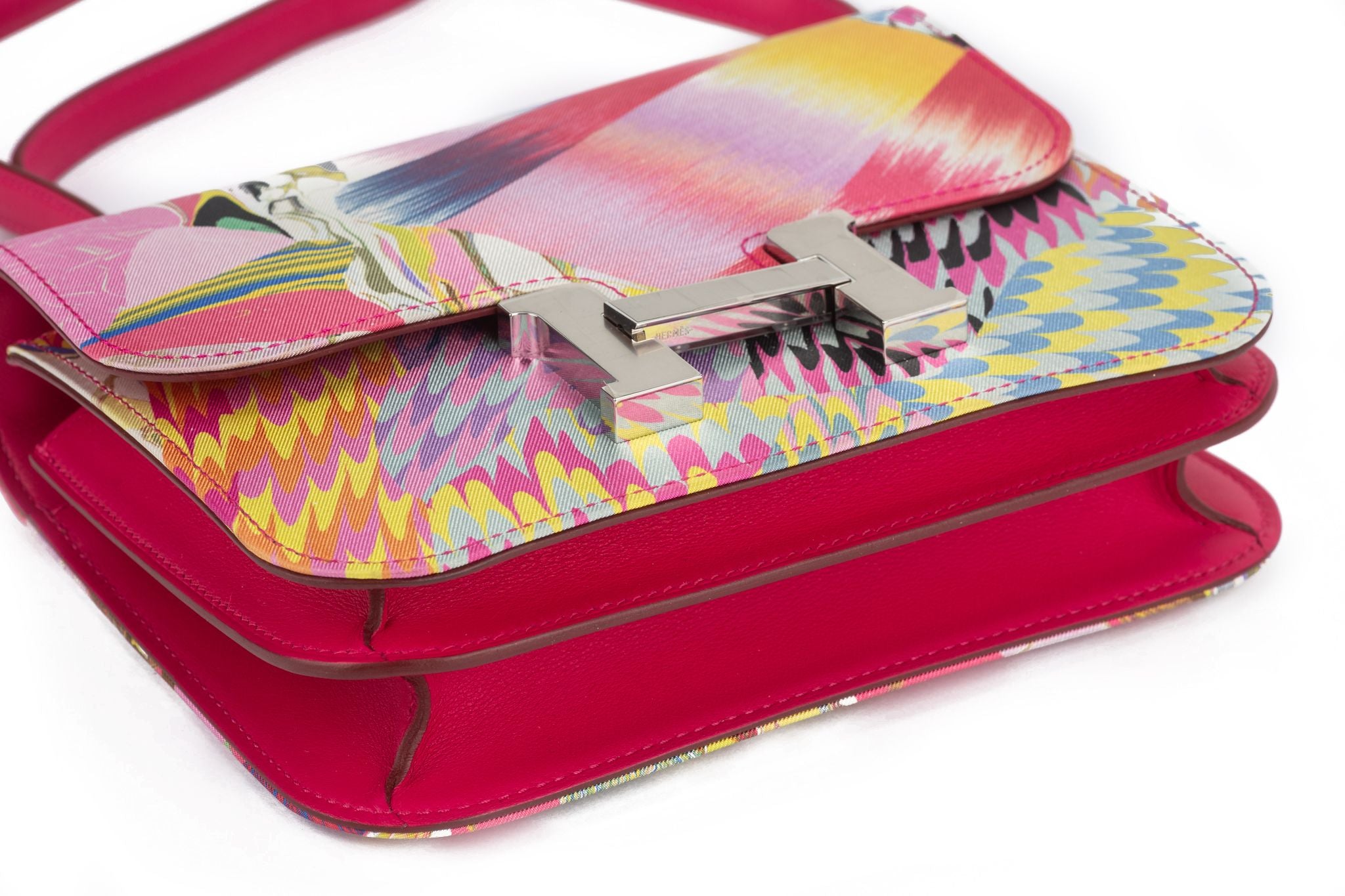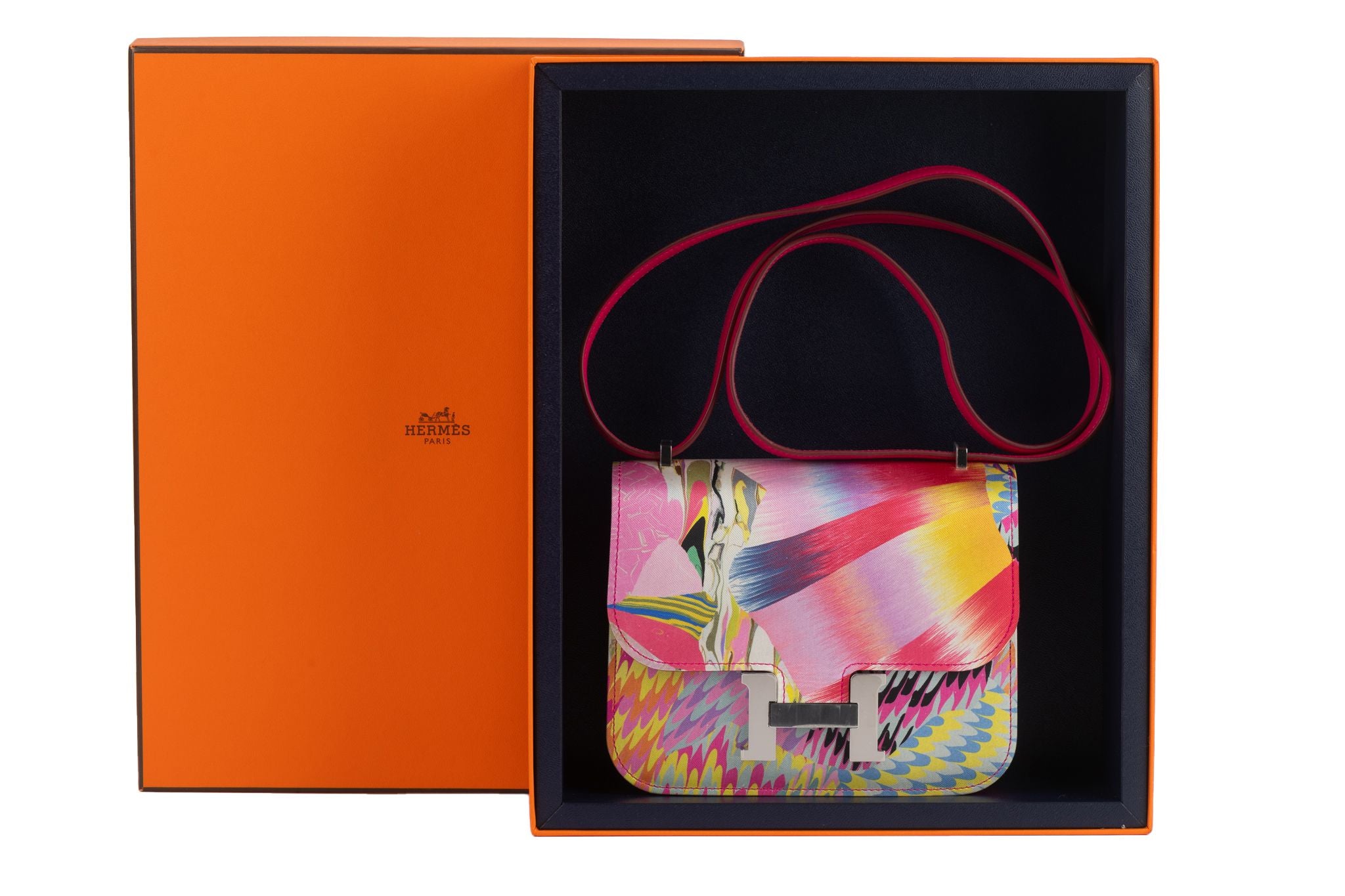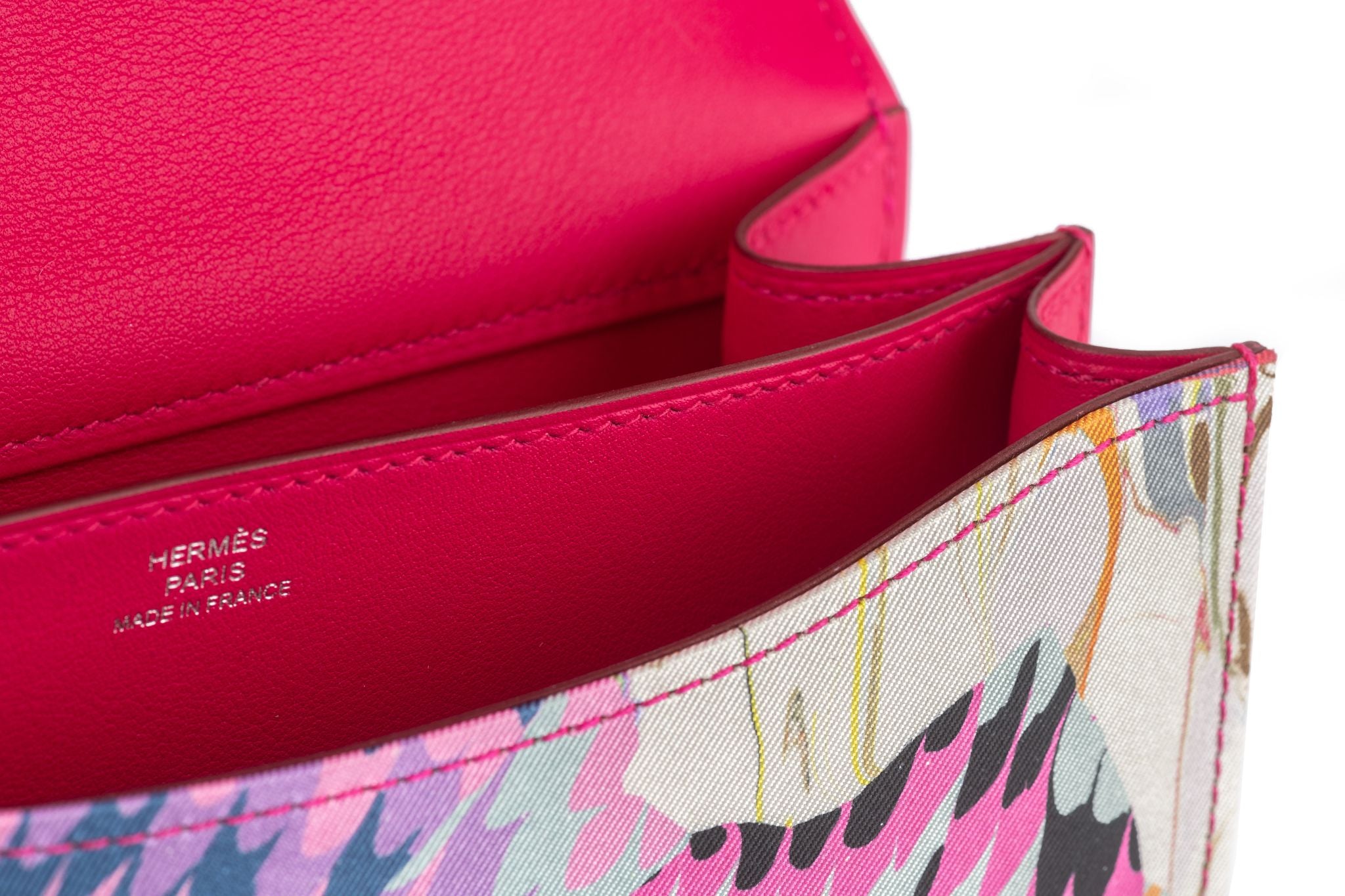 Hermès Constance 24 "Marble Silk" Rose Mexico Swift with Palladium hardware and tonal stitching, a metal H snap lock closure and adjustable shoulder strap. The interior is lining with Rose Mexico lambskin and has one zipper pocket. Date stamp Z. Shoulder Strap 20.5". Comes with felt, booklet, dustcover and original box. Brand new in unused condition.