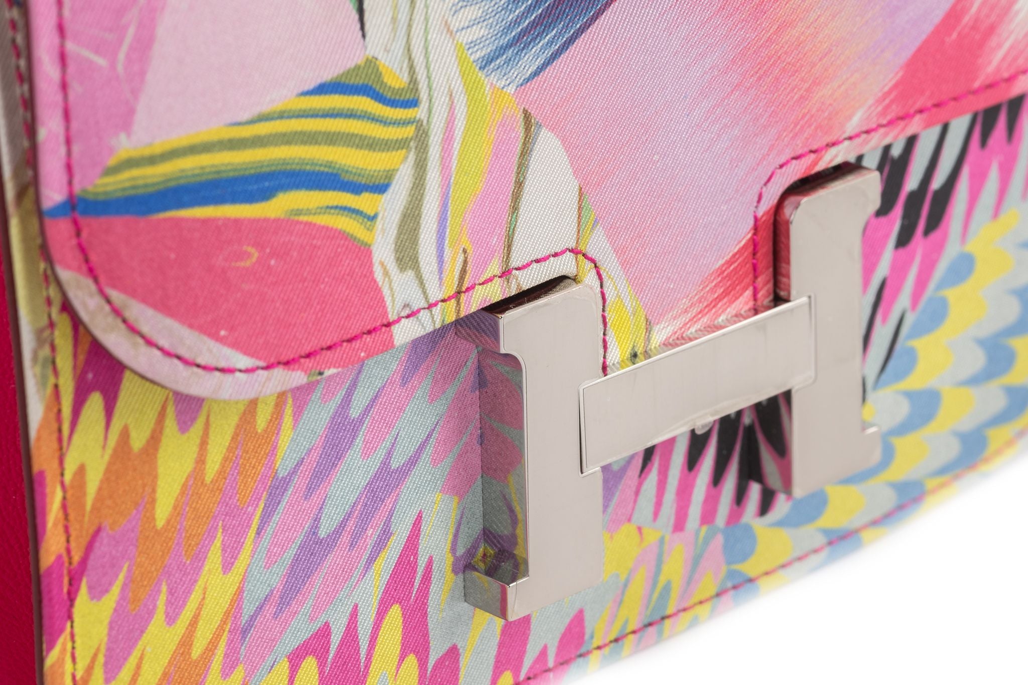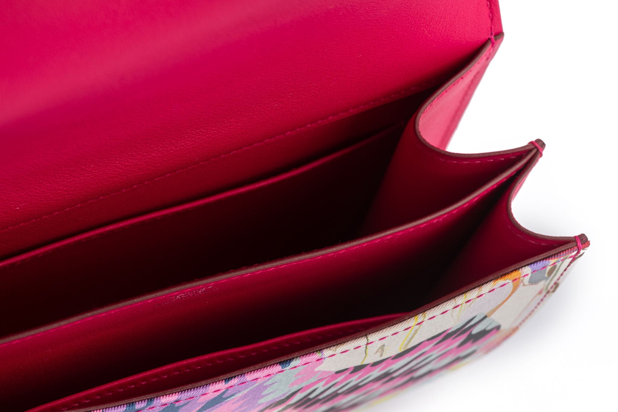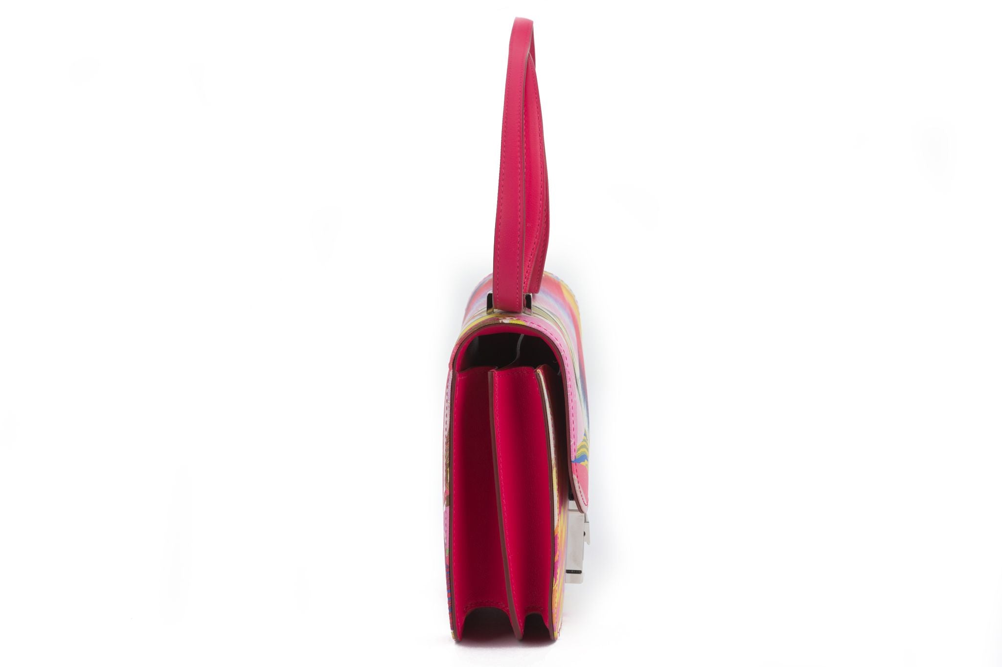 Hermès Constance 24 "Marble Silk" Rose Mexico Swift with Palladium hardware and tonal stitching, a metal H snap lock closure and adjustable shoulder strap. The interior is lining with Rose Mexico lambskin and has one zipper pocket. Date stamp Z. Shoulder Strap 20.5". Comes with felt, booklet, dustcover and original box. Brand new in unused condition.